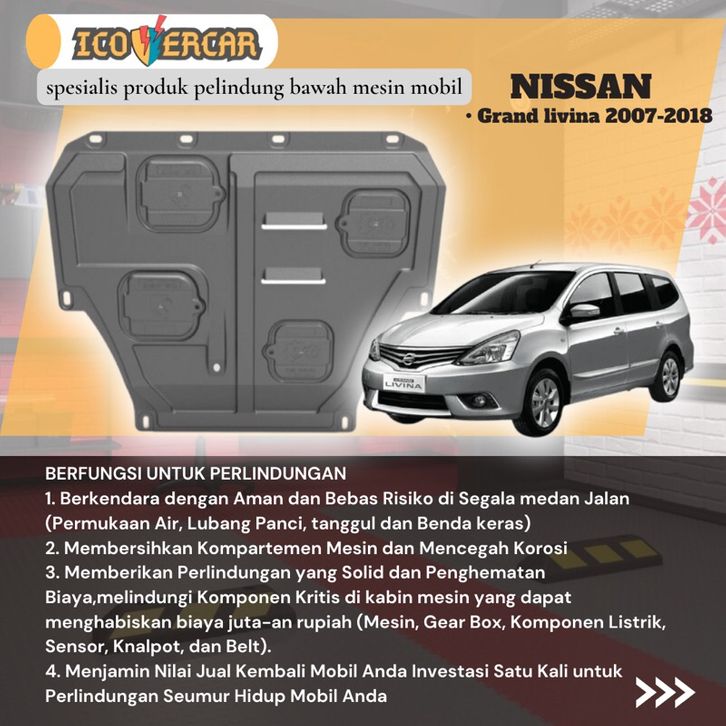 Cover engine pelindung ruang bawah mesin mobil Nissan grand Livina tahun 2007-2019