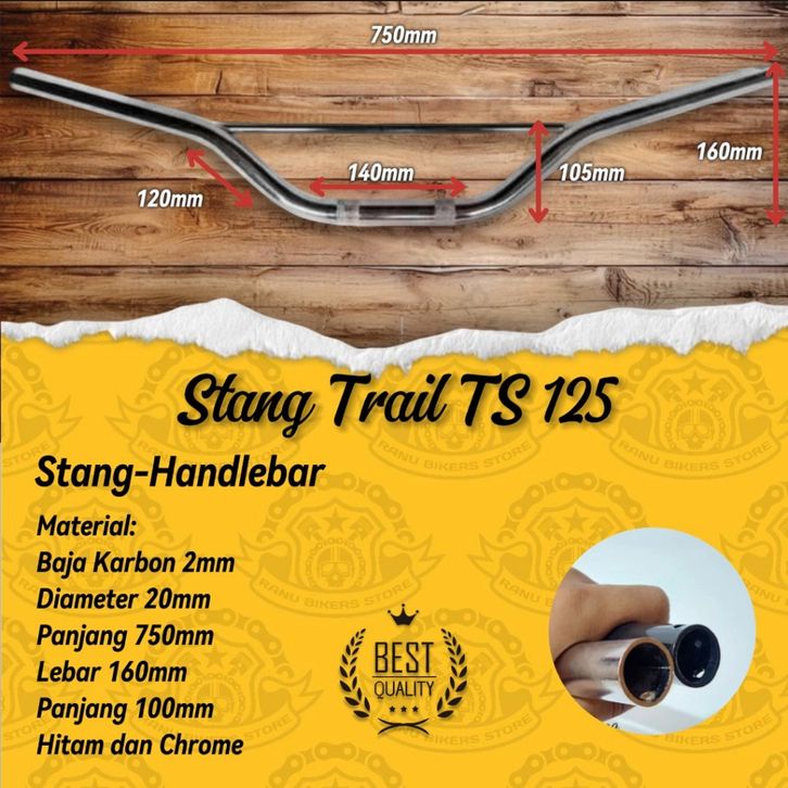 Stang Stir Scrambler Vintage Motor Trail Suzuki TS125 Tracker Custom W175 XSR155 Hitam Chrome