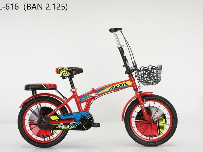 Axxil sepeda lipat anak ukuran 16 dan 18 inch dengan keranjang dan roda bantu - Pink 16
