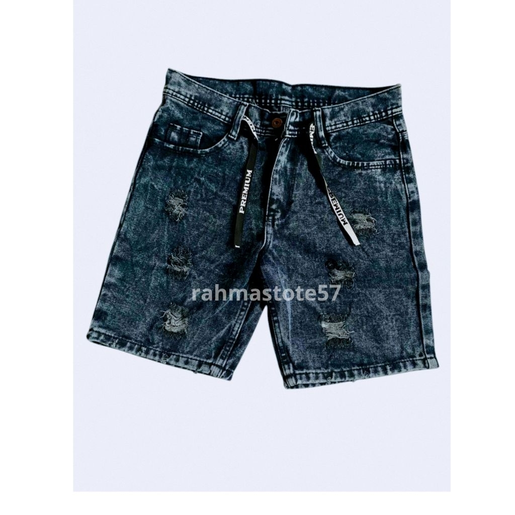 Celana Jeans Pendek Sobek Pria Wisker Ripped Robek Premium Denim tali