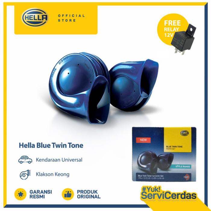 KLAKSON KEONG HELLA BLUE TWIN TONE 12V INCLUDE RELAY - KLAKSON MOBIL MOTOR - TWIN TONE 12V + RELAY