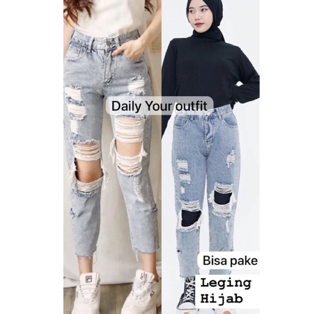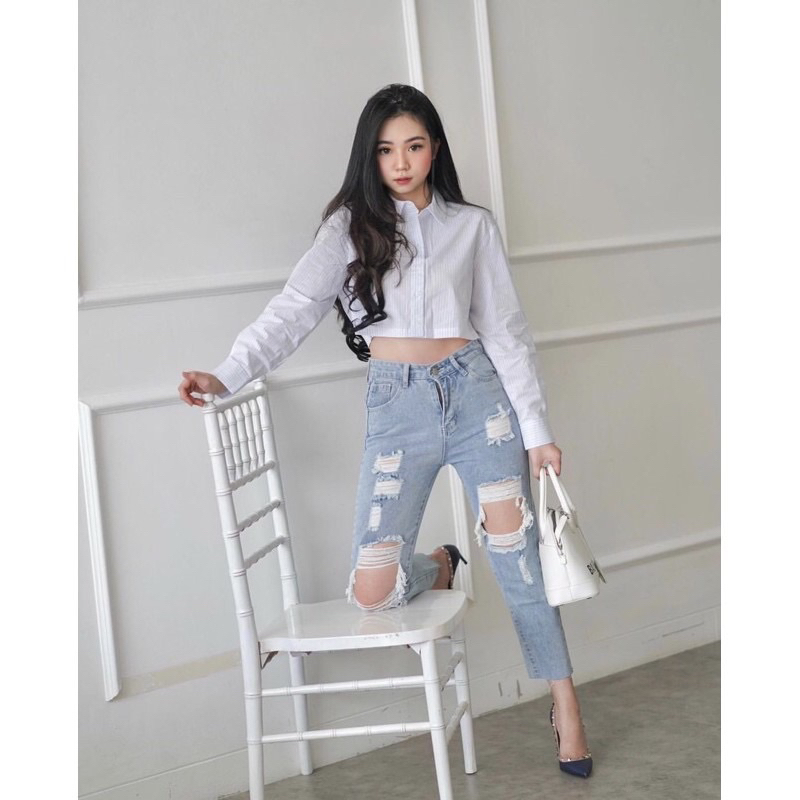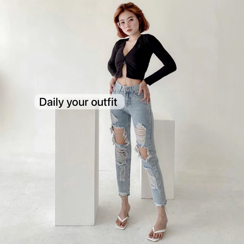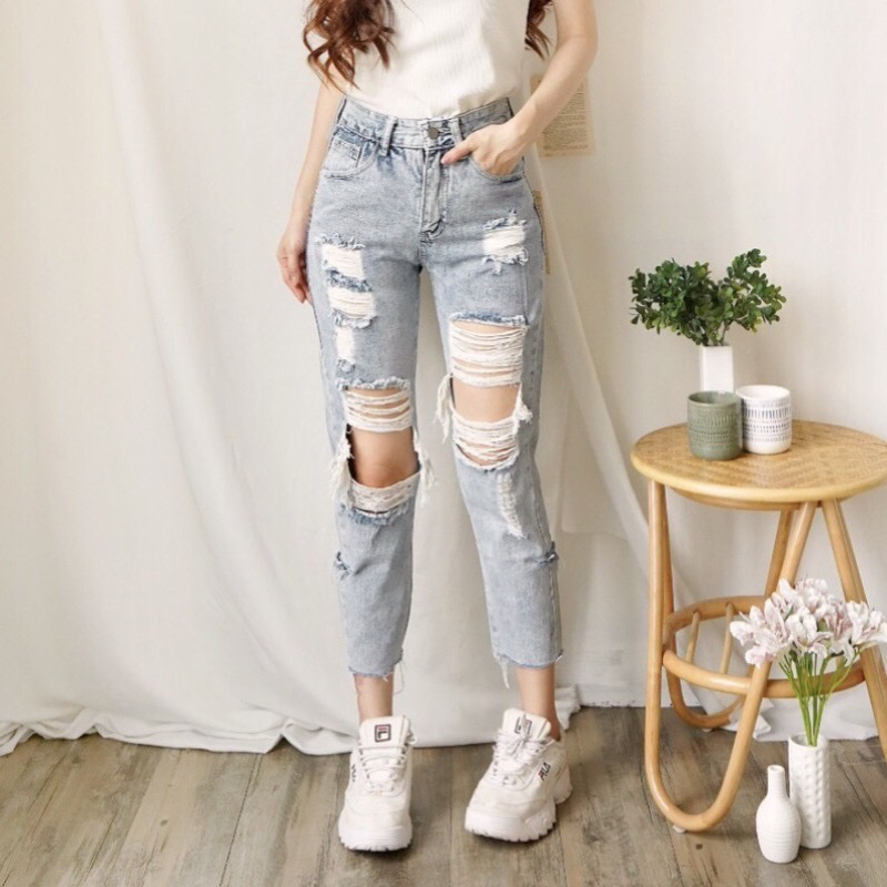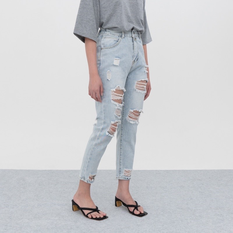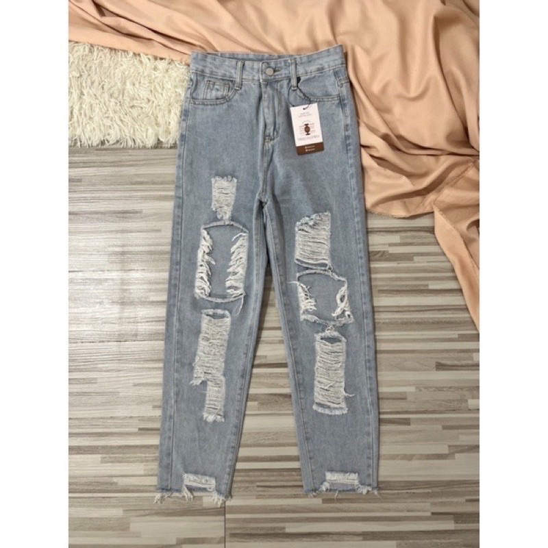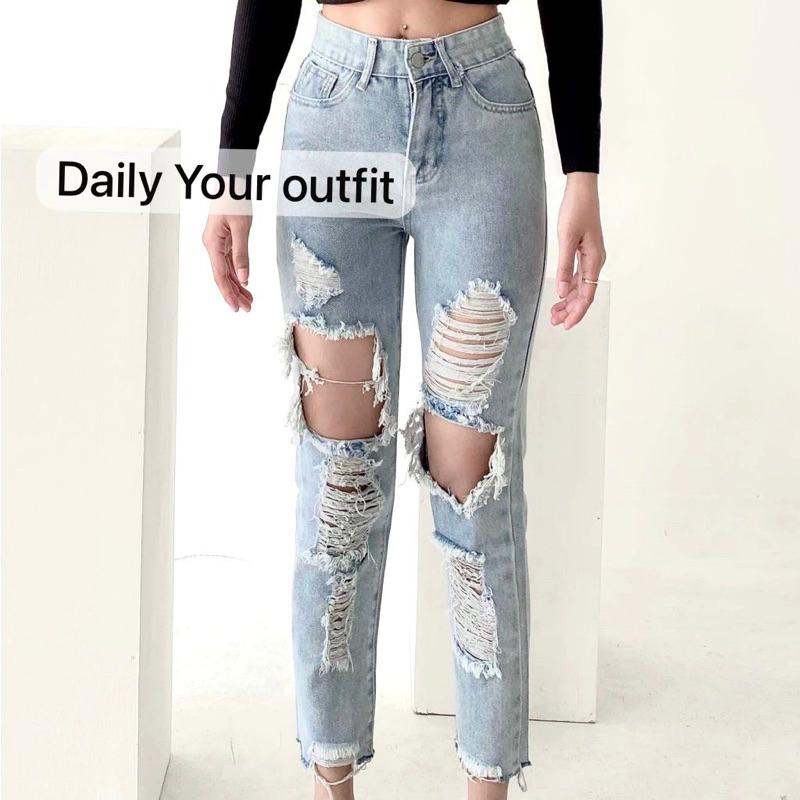 [YouniCloth] - Ripped Jeans Boyfriend Celana Jeans Sobek Celana Jeans Wanita HW jeans wanita import jeans premium celana jeans wanita