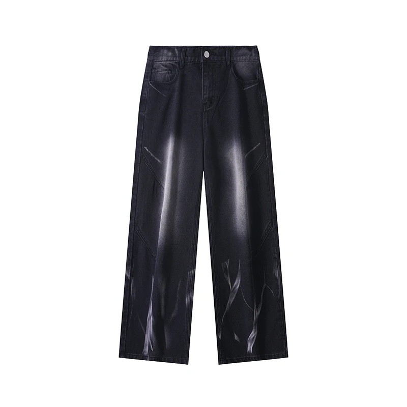 Tamp-X Oversize Baggy Celana Jeans Pria Jeans Petir Skena Hitam Denim Jumbo Loose Jeans Korean Style Kulot Straight Retro