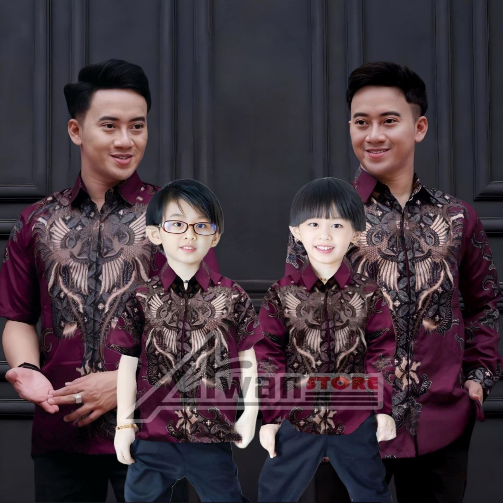 TERBARU BATIK LENGAN PANJANG DAN PENDEK KEMEJA PRIA DEWASA ANAK LAKI LAKI MOTIF LAYANGAN BURGUNDY