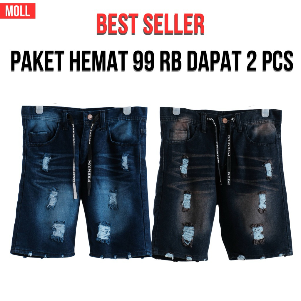 Paket Hemat 100 Ribu Dapat 2 PCS Celana Jeans Pendek Sobek Pria Dewasa Premium jeans pendek