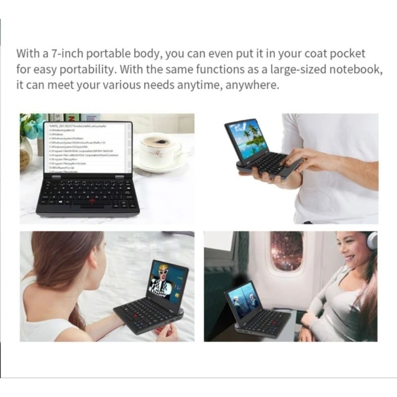 Laptop Mini W7 12/512GB 7" N4000 Touch Keyboard US Windows 11 + Stylus Pen + Case + Slim Mouse