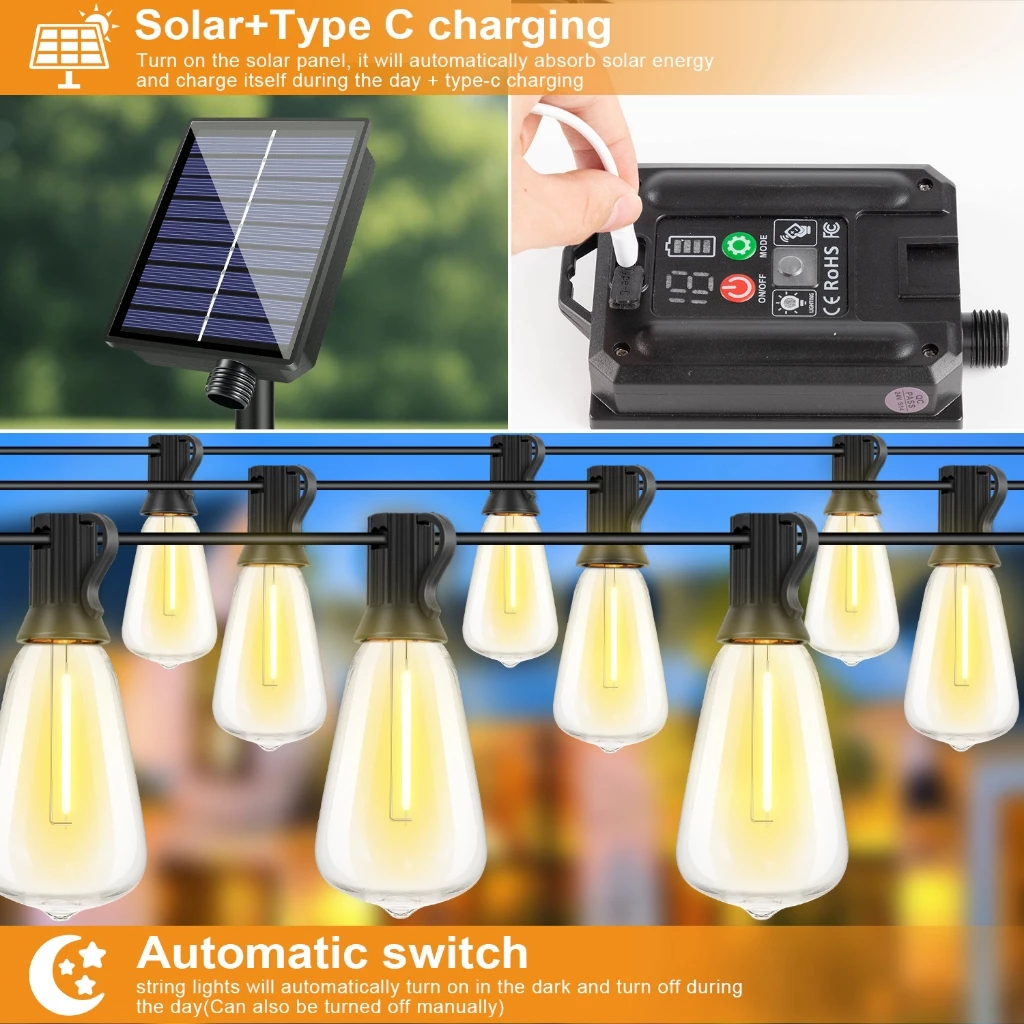 15Meter Led Outdoor Fitting Lampu Tenaga Surya Tahan Air Kafe Dekorasi Lampu Hias Komplit Lampu