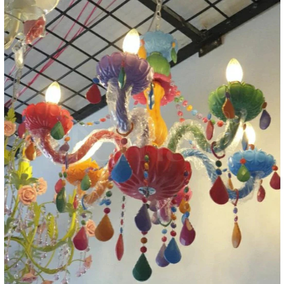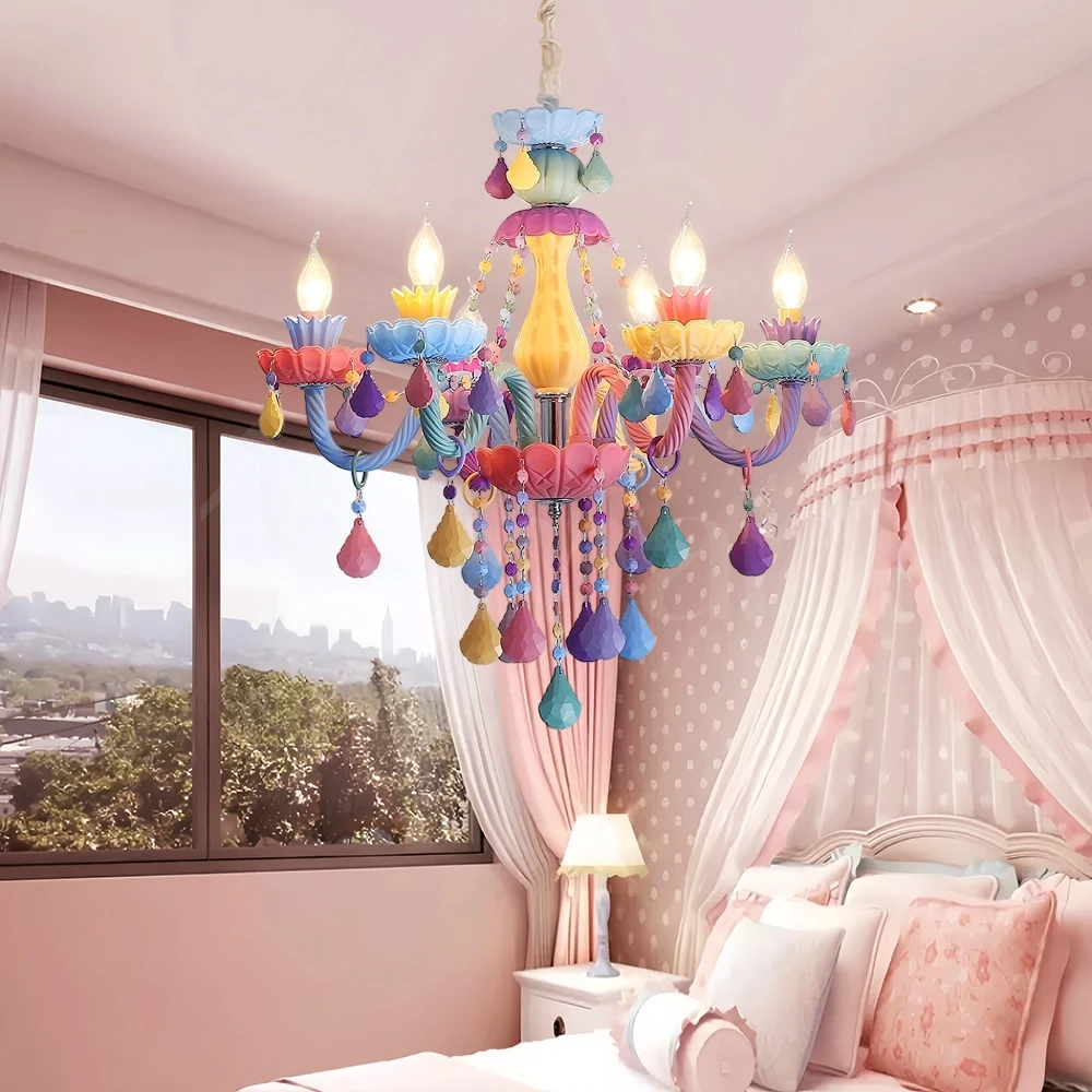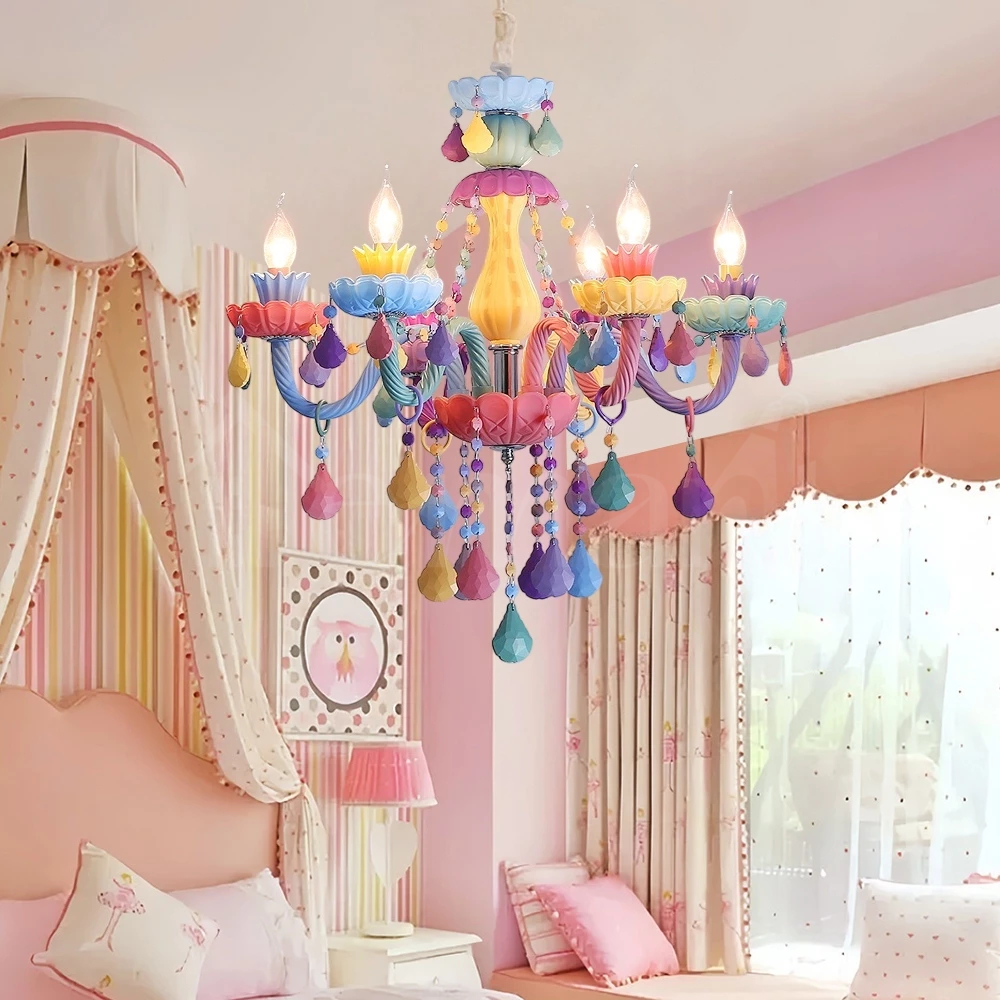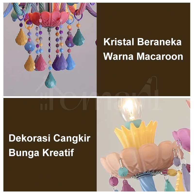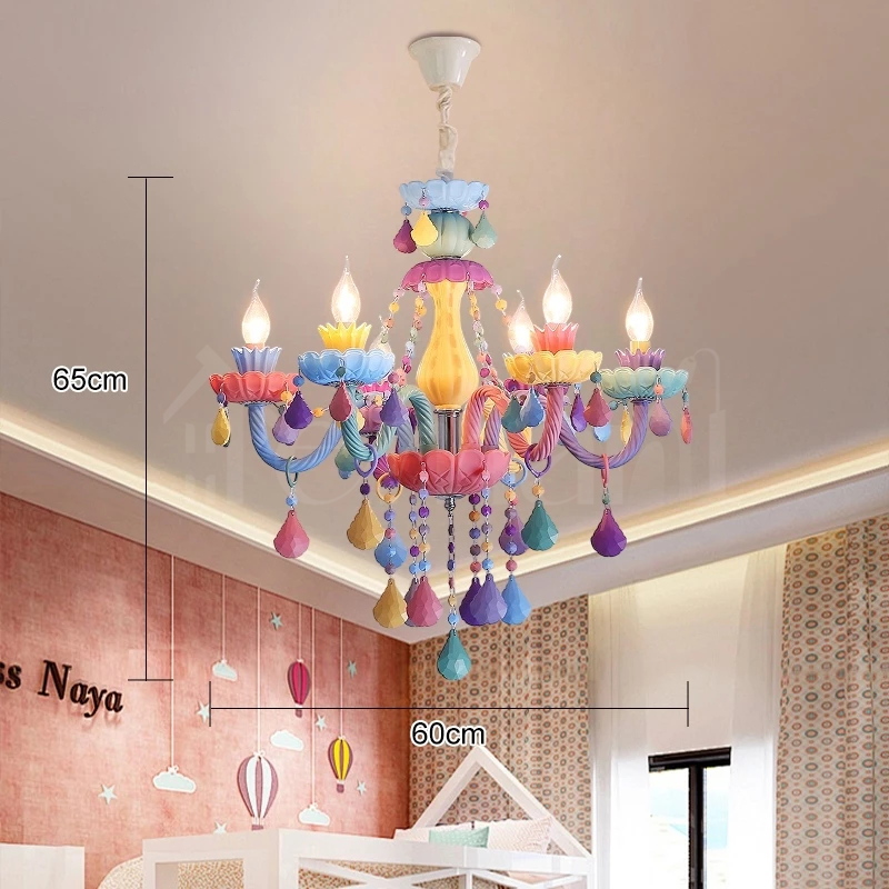 Lampu Gantung Kamar Tidur Rainbow Macaron Lampu Hias 6Head Putri Kamar Gadis Plafon Kartun Kamar Tidur Ruang Tamu ate