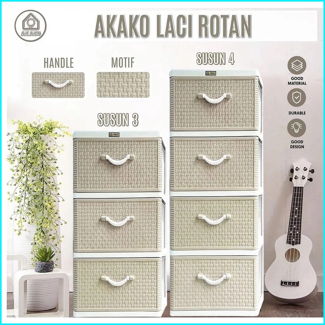 Akako Lemari Plastik Laci 3 4 5 Susun Lsf Warna Warni Fancy Motif Rotan