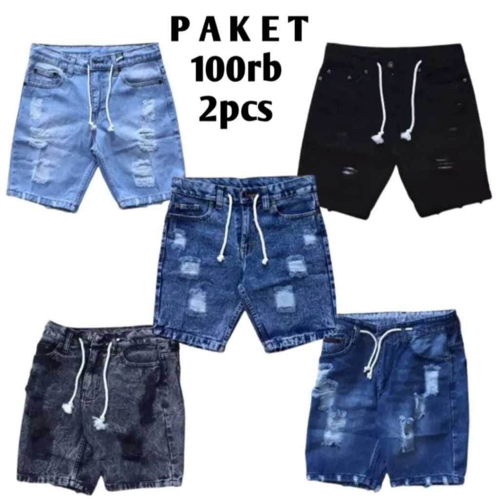PROMO SUPER MURAH 100 RIBU DAPAT 2 PCS CELANA JEANS SOBEK PENDEK PRIA PREMIUM