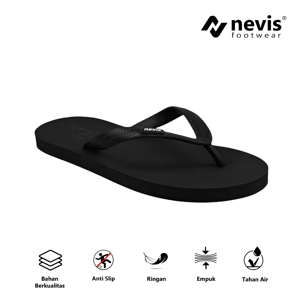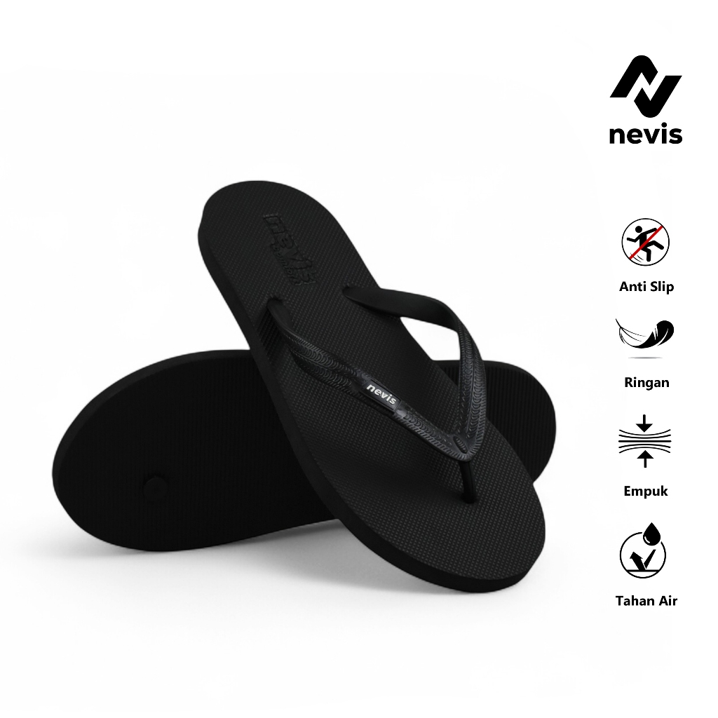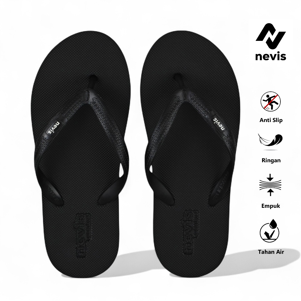 NEVIS Sandal Karet Jepit Pria Wanita Jumbo Big Size 39-46 Original Comfort Sendal Rubber Japit Hitam