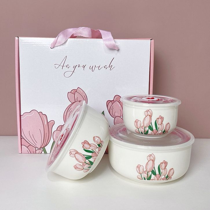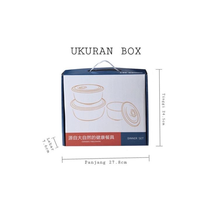 MANGKOK SAJI SET CERAMIC TABLEWARE ISI 3 DENGAN PENUTUP LAUK BOX PENYIMPANAN MAKANAN