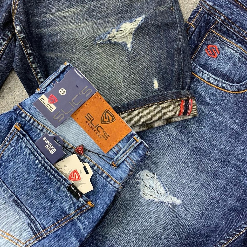 SLICS JEANS (RP5) CELANA JEANS PENDEK PRIA SOBEK LAPIS TIDAK MELAR