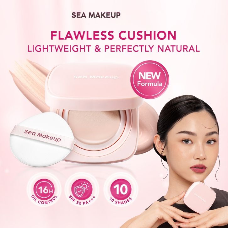 CUSHION SEA MAKEUP FIX AND FLAWLESS SILK CUSHION FOUNDATION RINGAN SKIN TINT EFFECT, OIL CONTROL & SILK MATTE FINISH