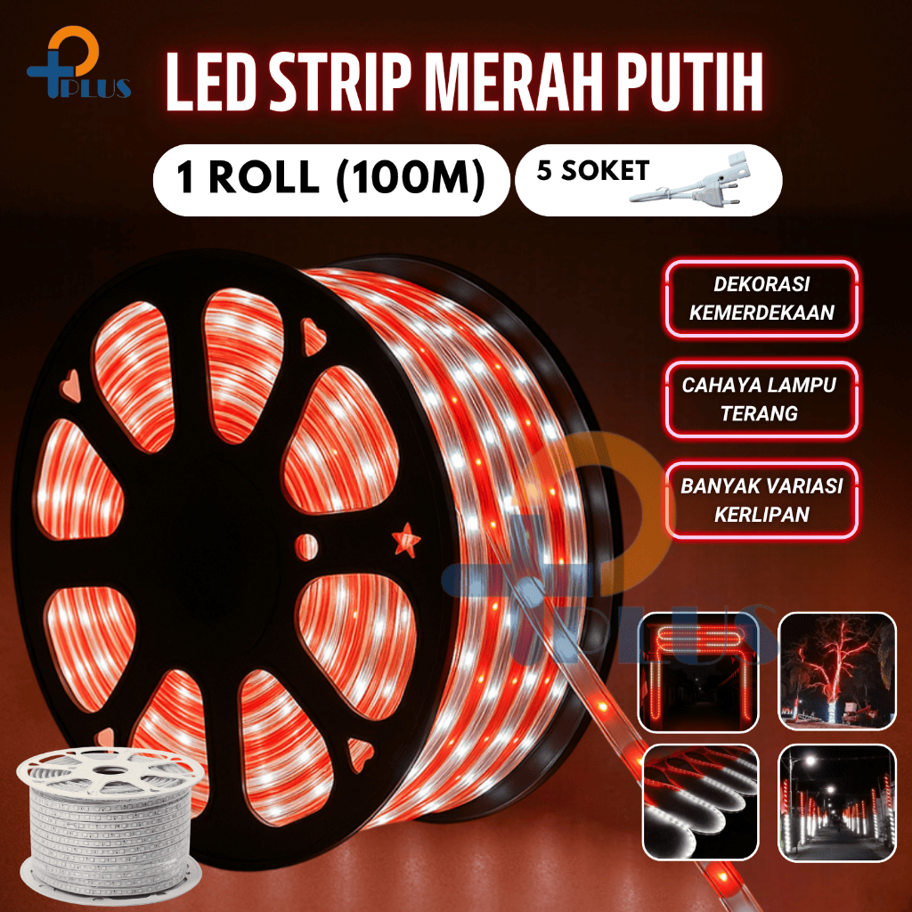 [ Pplus ] 1 Roll 100m Lampu LED Strip Merah Putih Bonus 5 Soket / led strip Merah Putih full 100m bonus 5 socket / Lampu