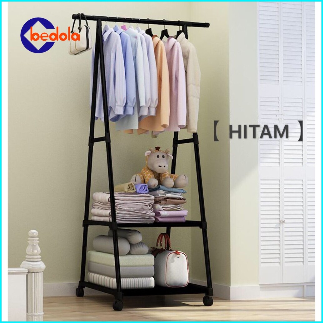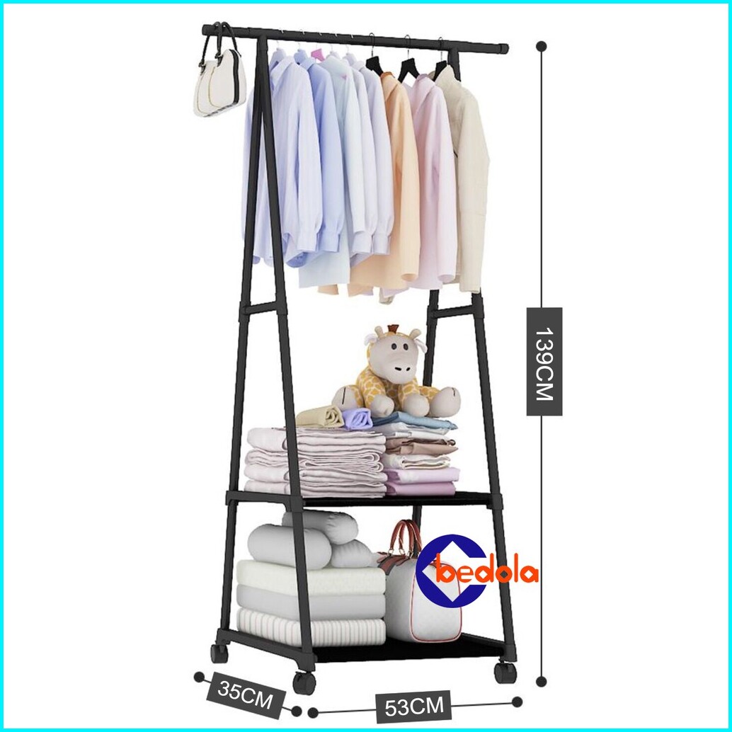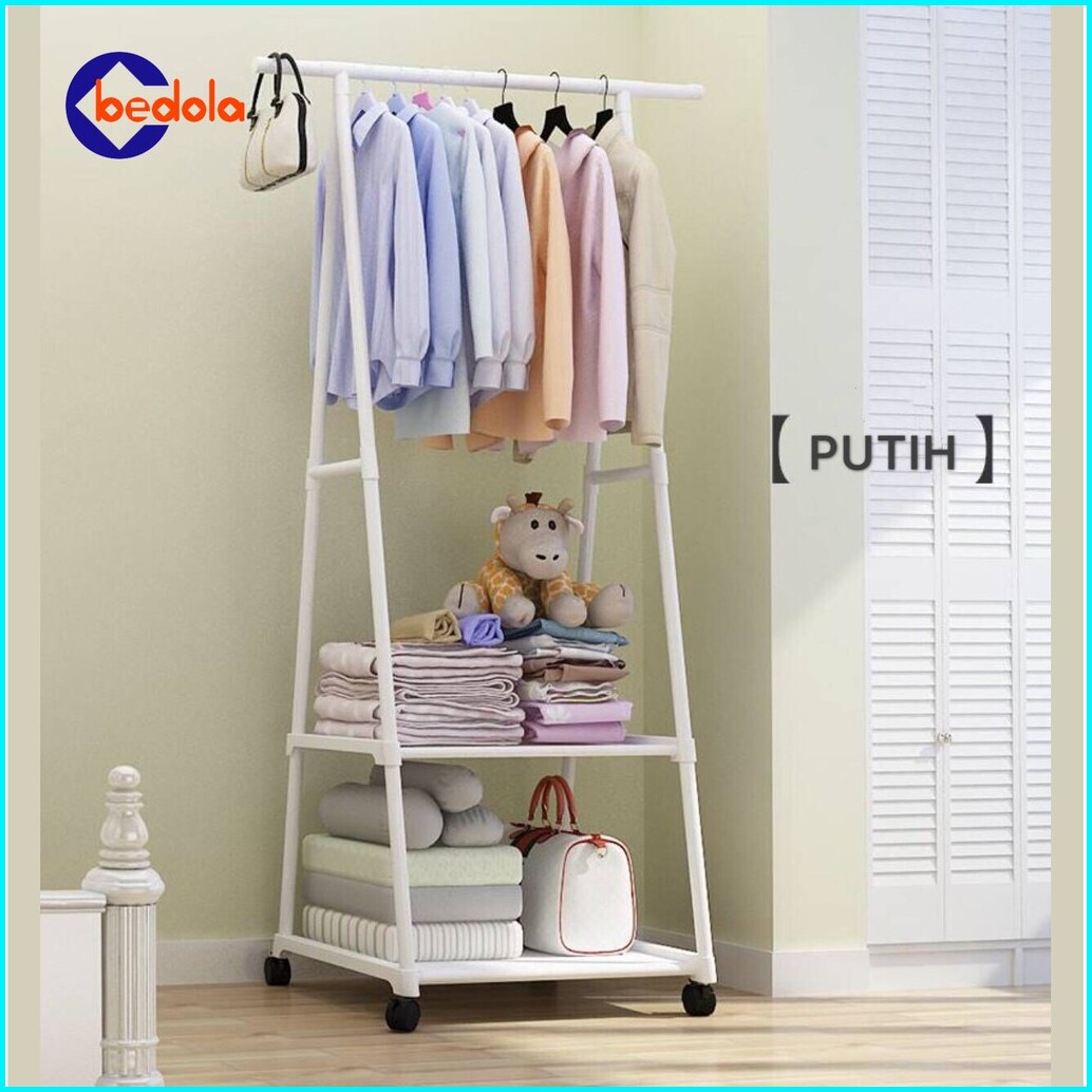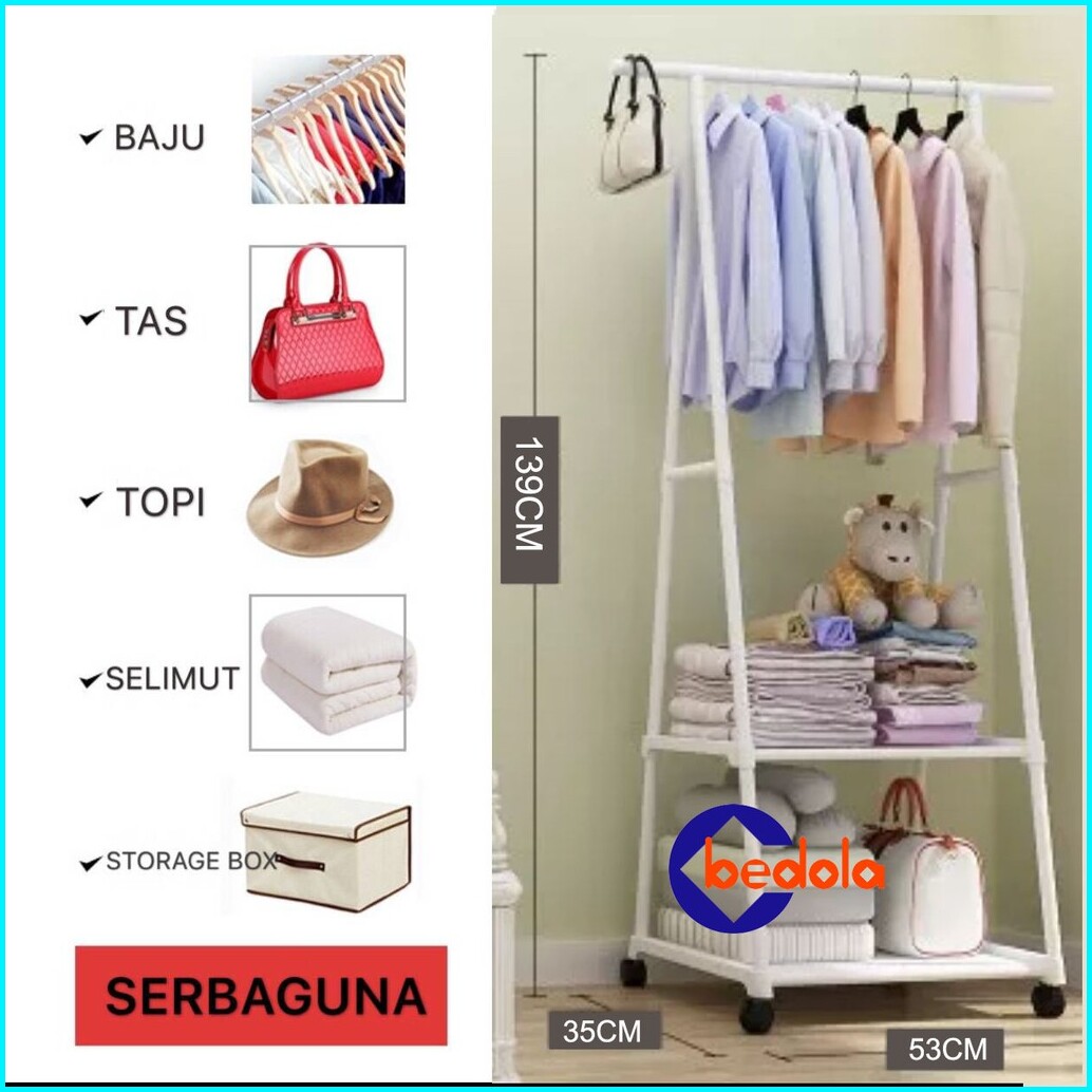 Triangle Stand Hanger Baju Rak Buku Rak Pakaian Rak Gantungan Baju Rak Susun Serbaguna Tempat Baju Dengan 4 Roda