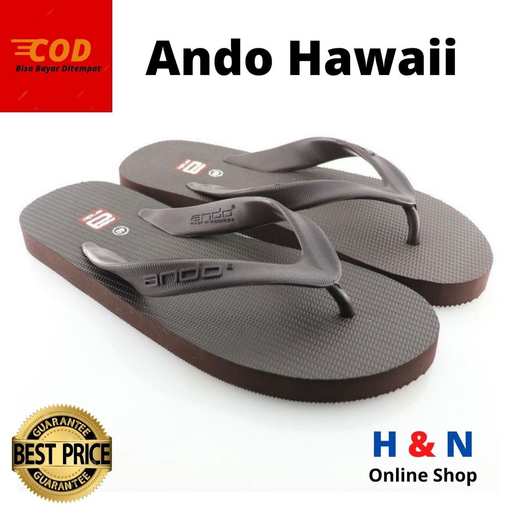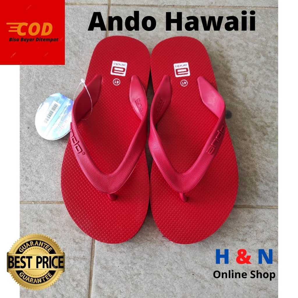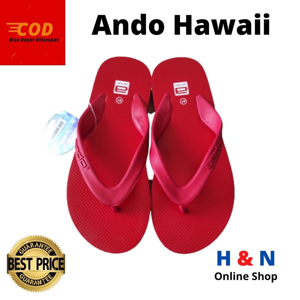 Sandal Jepit ANDO Hawaii Merah / Cokelat / Abu-Abu ORIGINAL - Diskon Besar - Murah - Size 38 - 42