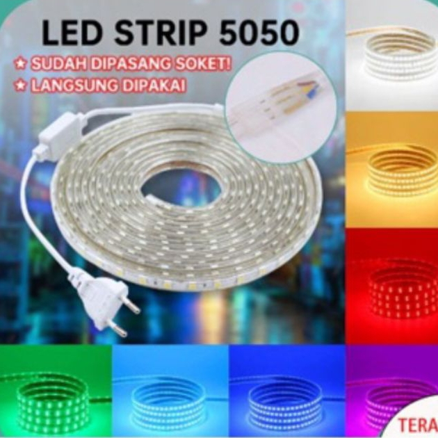 PAKET LAMPU LED STRIP 5050 SELANG 21 METER s/d 30 METER LENGKAP TINGGAL COLOK + SOCKET LAMPU HIASAN RUANGAN / LAMPU DEKO