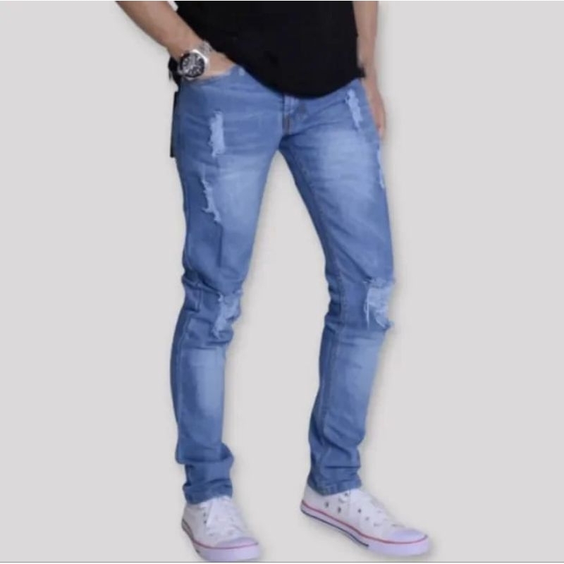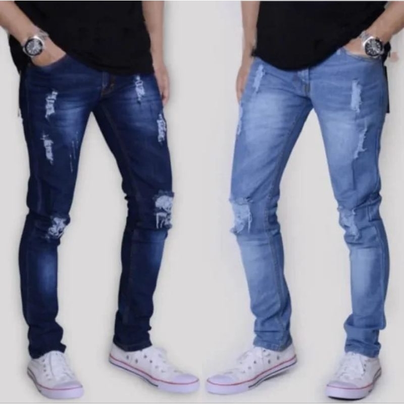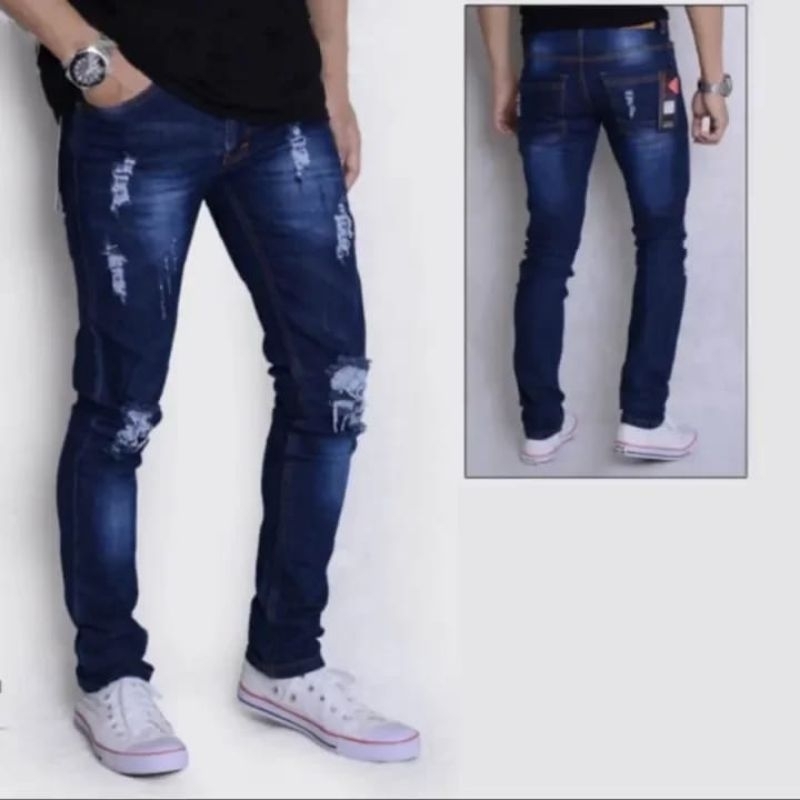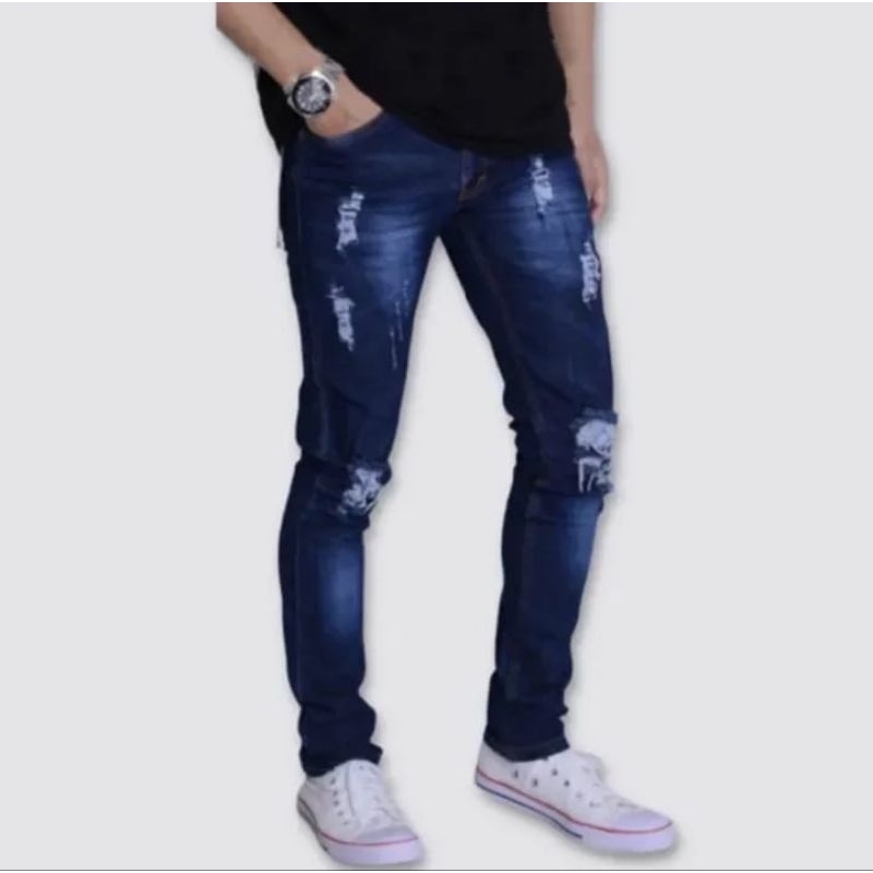 Celana Jeans sobek pria-Ripped Jeans-Celana slimfit pria motif sobek