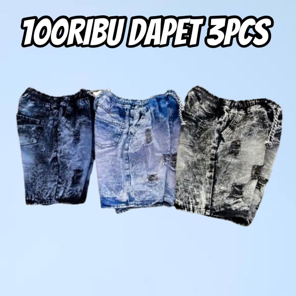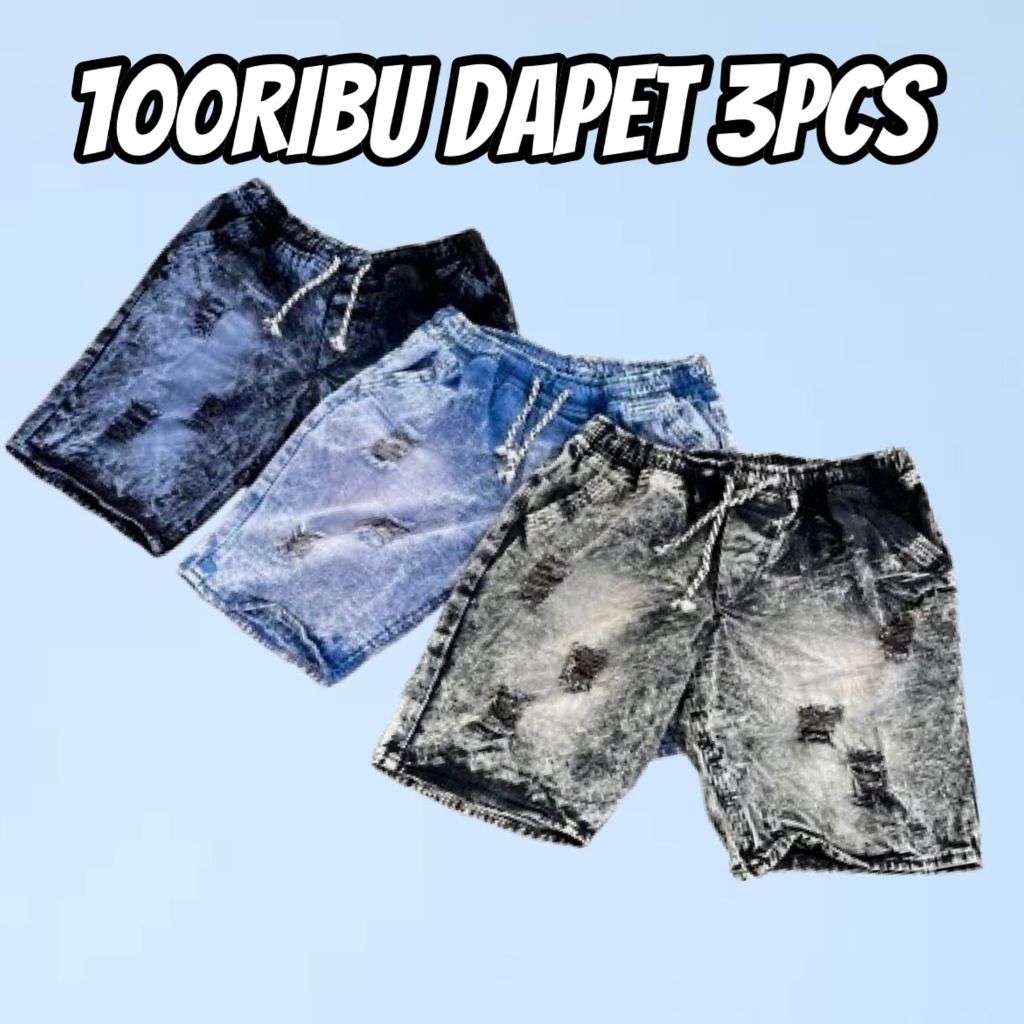 3pcs 100Ribu Celana Pendek Pria Motif Sobek | Celana Jean Pendek Pria Distro | Celana Pria Di Atas Lutut