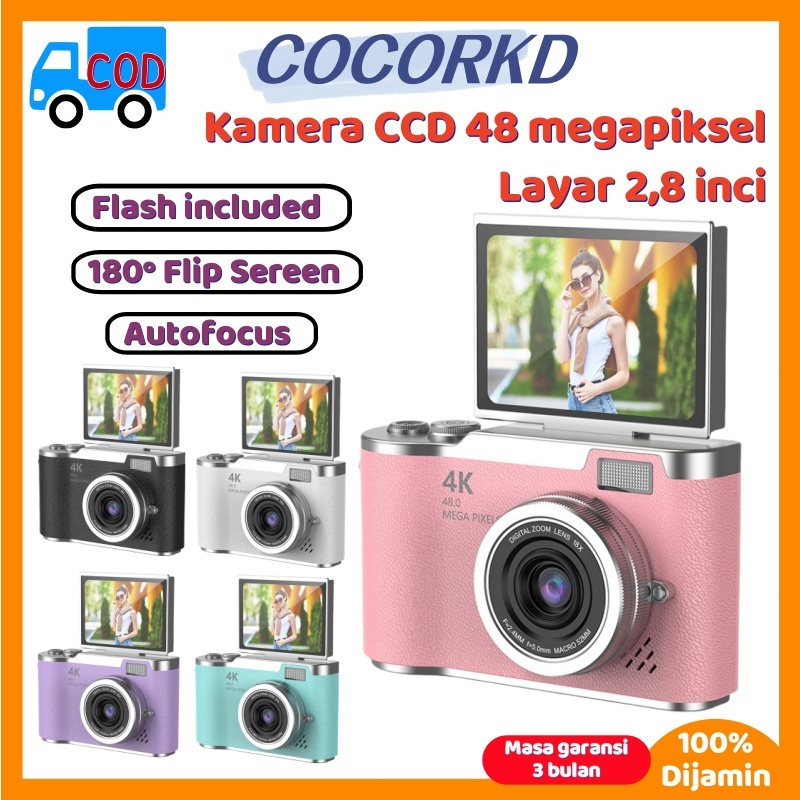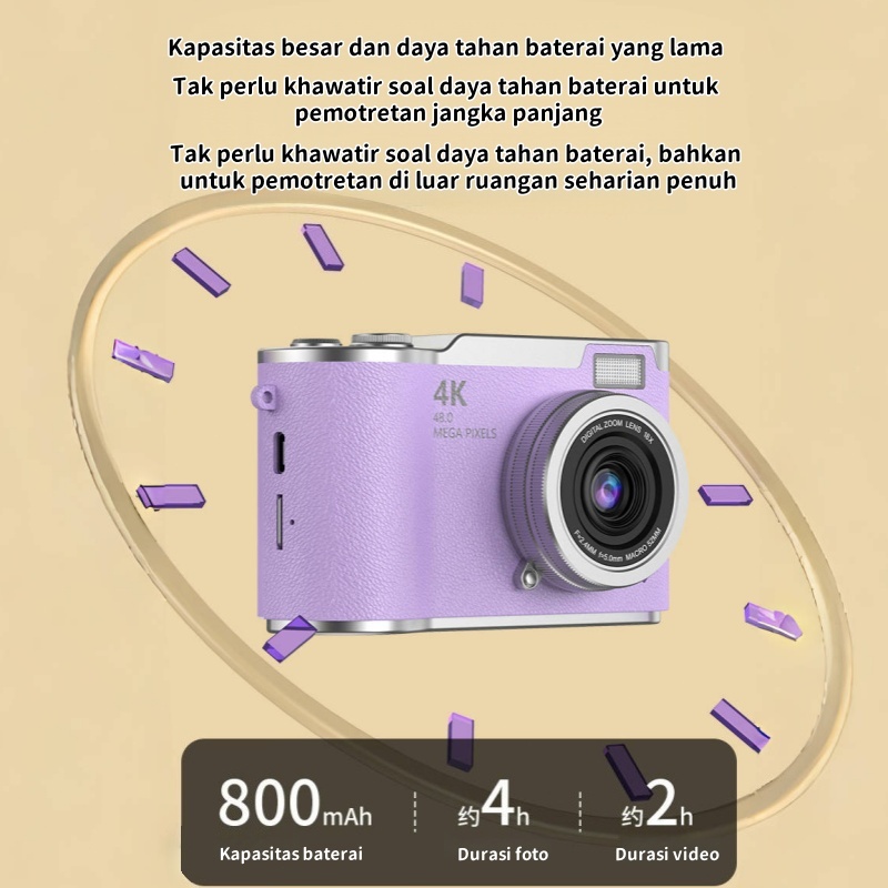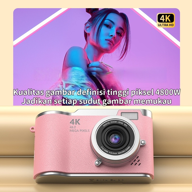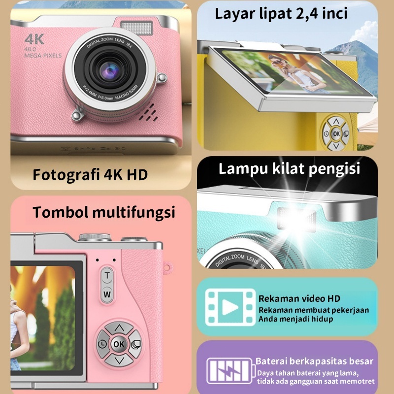 Termasuk kartu 64G, kamera digital 4K HD 48 juta piksel dengan flash, kamera foto mini, layar flip 180°, zoom 8x, self