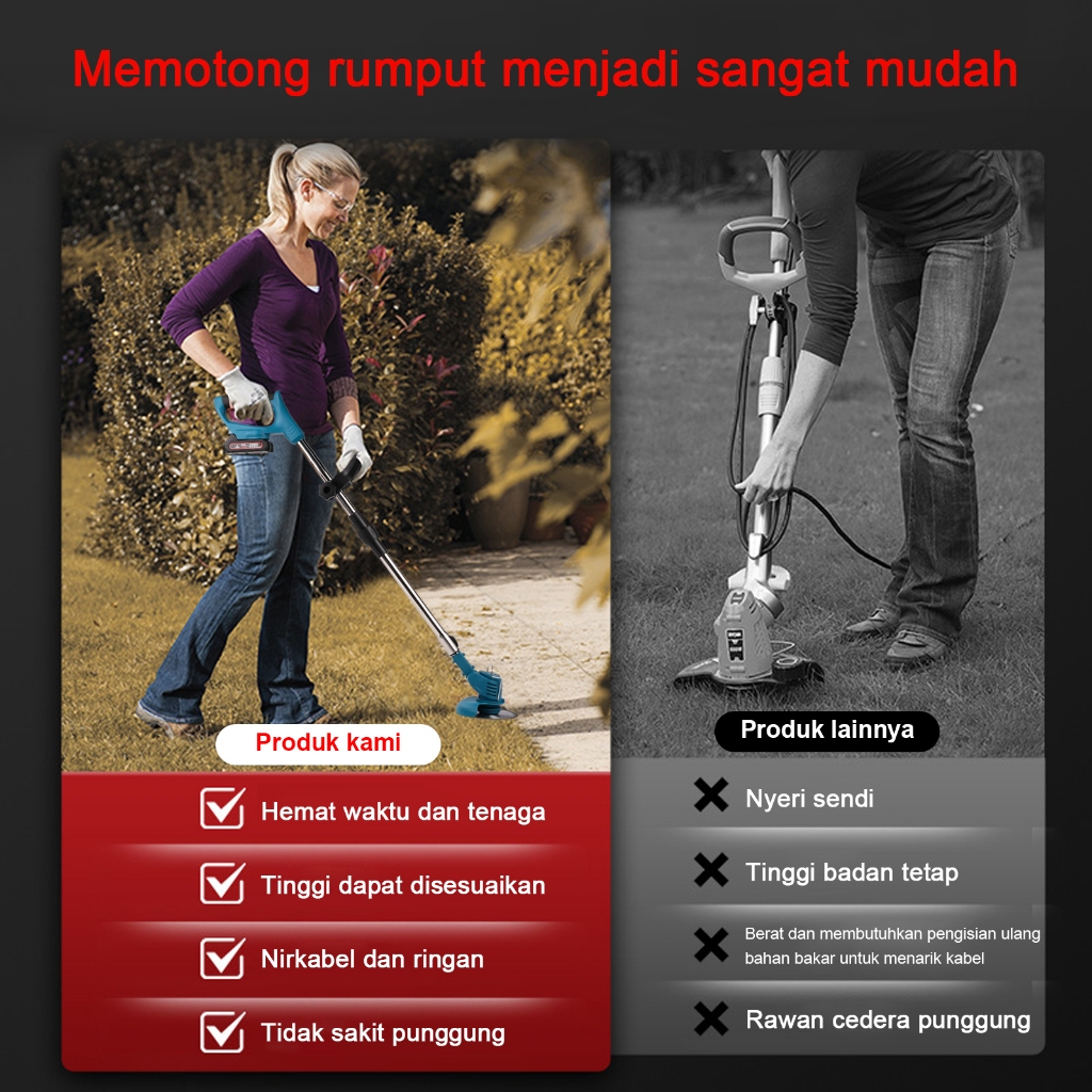 WARMEE Mesin potong rumput baterai portable mesin rumput baterai elektrik portable pemotong rumput