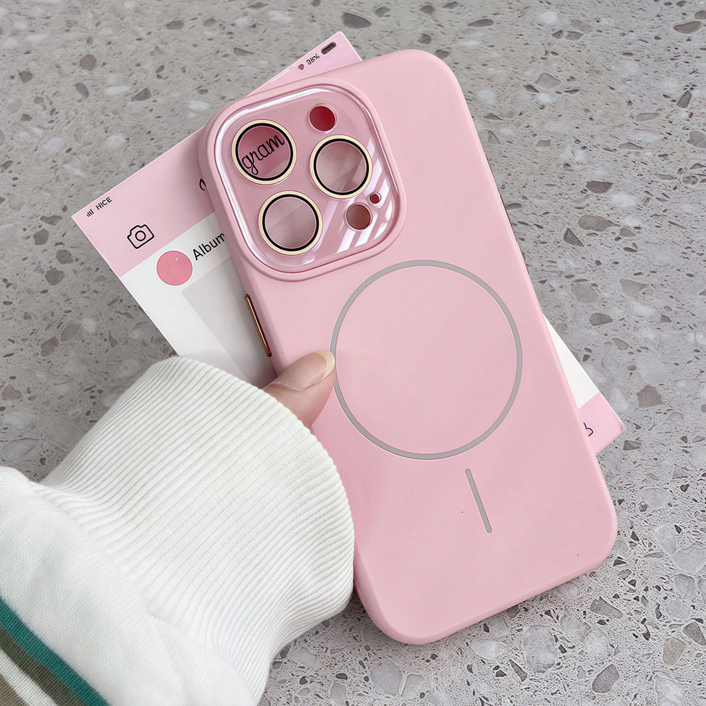 [Mall] PREMIUM SOFT CASING WITH MAGSAFE MAGNETIC MATTE PINK SILICONE CASE FOR IPHONE 13 11 12 14 16 15 PRO MAX 15PLUS BLACK TITANIUM COLOR COVER