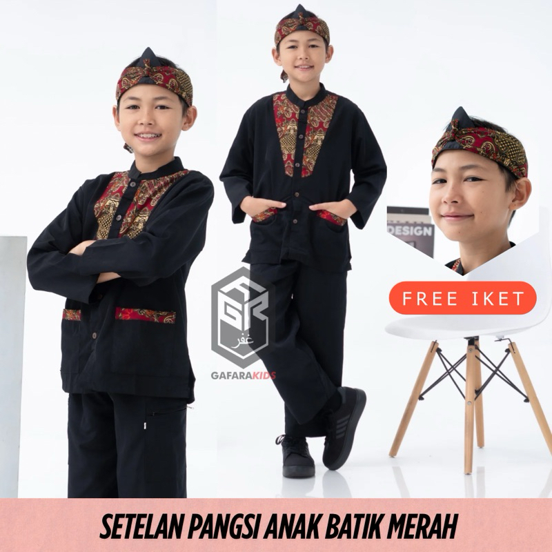 Setelan Pangsi Anak Batik Merah Bahan Bestway Premium Terbaru Free Iket Kepala Usia 4-15 Tahun By Gafara Kids