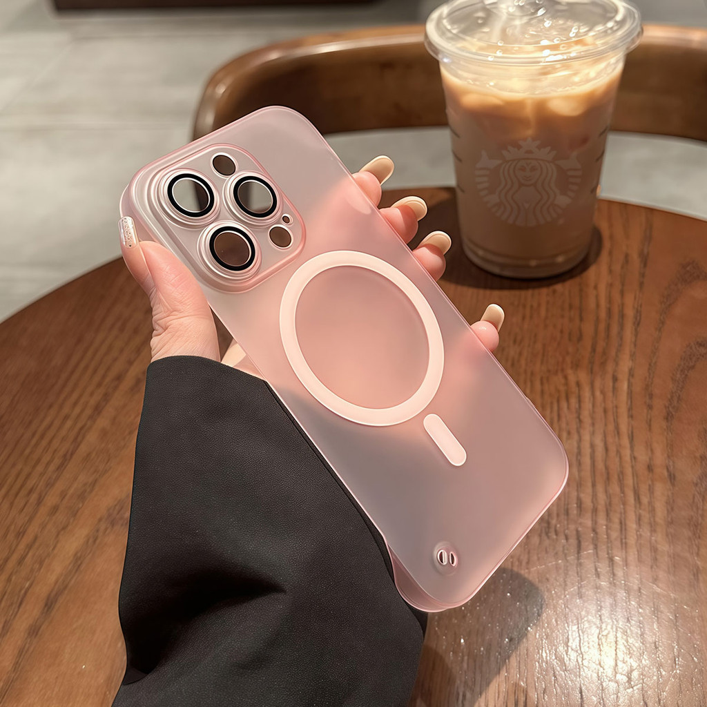 [Mall] [DESAIN TANPA TEPI] PELINDUNG KAMERA HARDCASE MATTE PINK CASE MAGNETIC CASING WITH MAGSAFE FOR IPHONE 13 11 12 14 15 16 PRO MAX 14PLUS 15PLUS 16PLUS BLACK BLUE COVER