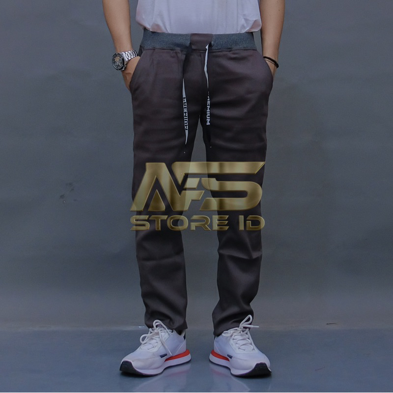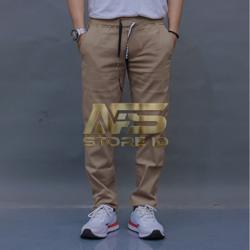 Celana Pria Chino Rib Panjang Pinggang Karet/Celana Chinos Panjang Pinggang Karet Rip Kolor Slimfit