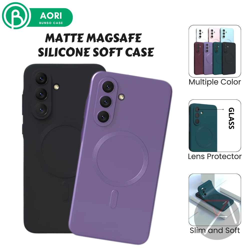 [Mall] BUNSO AORI SOFT CASE UNTUK SAMSUNG GALAXY A56 A36 A26 A16 A55 A35 A15 5G 4G MATTE MAGSAFE SLIM SILICONE MAGNETIC SILIKON COVER CASING WITH CAMERA LENS GLASS PROTECTOR