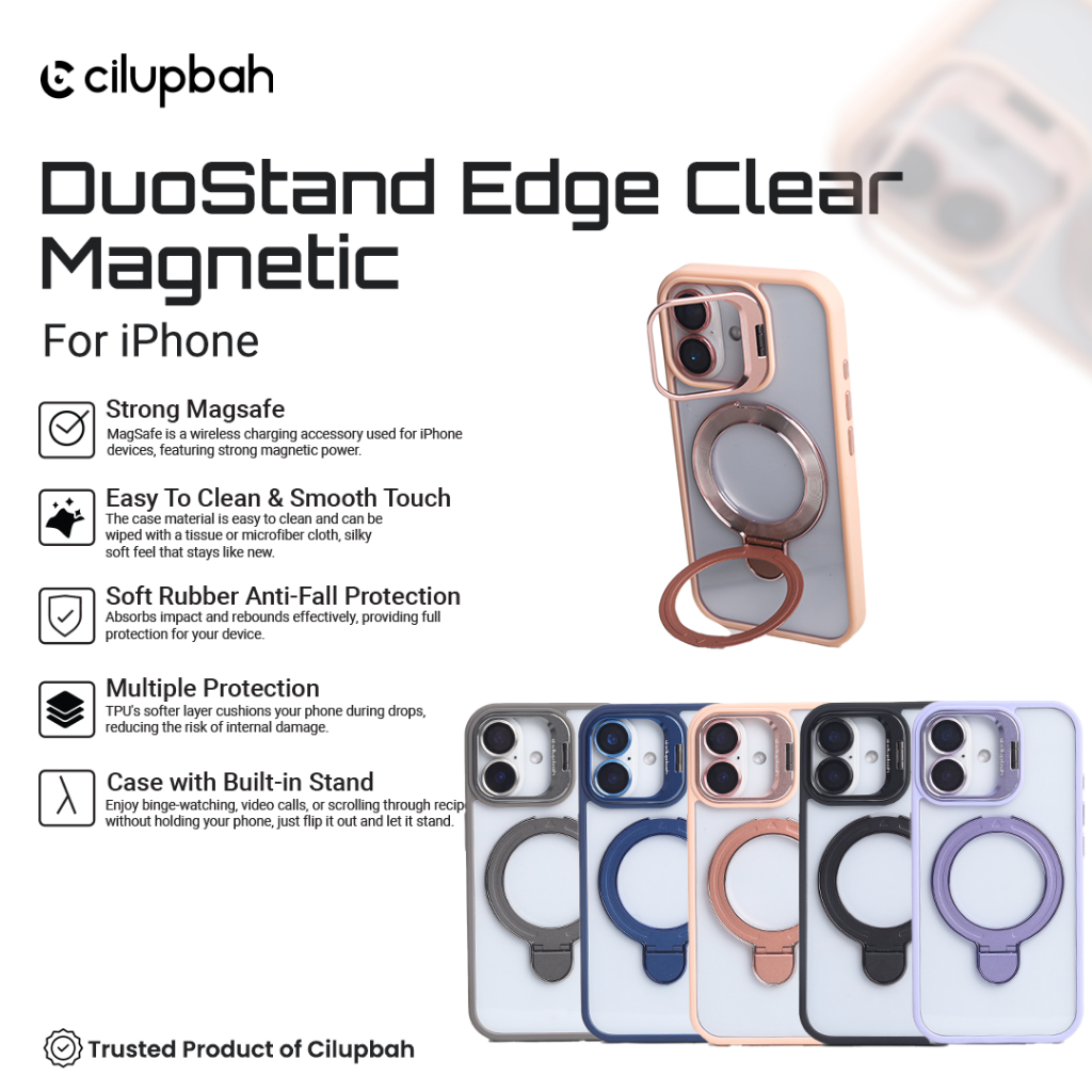 [Mall] CILUPBAH DUOSTAND EDGECLEAR MAGNETIC CASE + LENS GUARD FOR IPHONE 11 12 13 14 15 16 PLUS PRO MAX