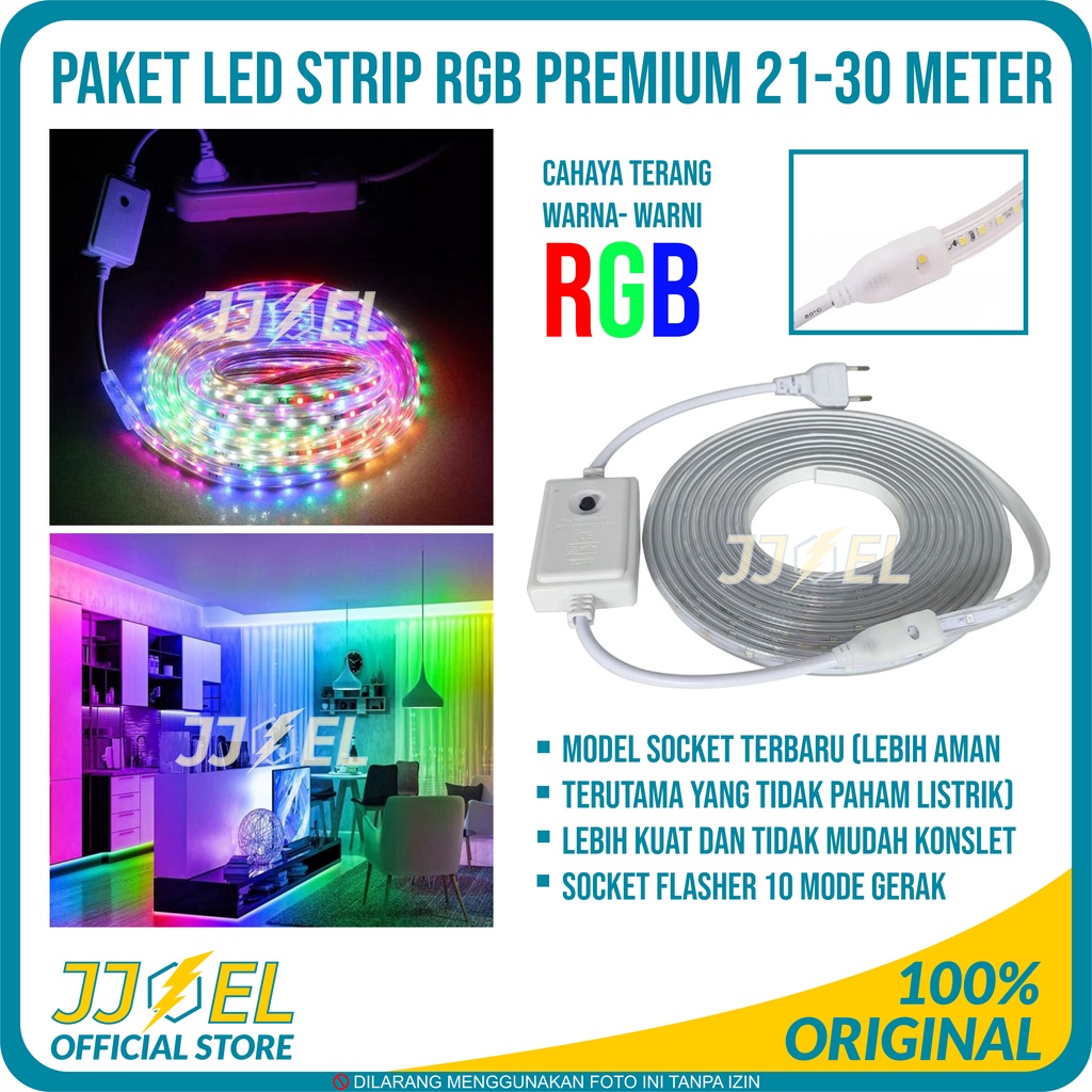 Lampu LED Strip Selang RGB PREMIUM 220V Warna Warni Paket 21-30 Meter