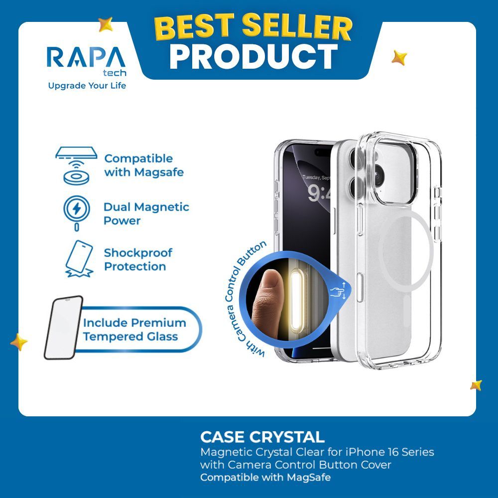[Mall] RAPATECH HYBRID MAGSAFE CLEAR CASE IPHONE 12 13 14 15 16 SERIES WITH CAMERA CONTROL BUTTON CASE CRYSTAL 2 IN 1 WITH PREMIUM TEMPERED GLASS CASE IPHONE MAGSAFE