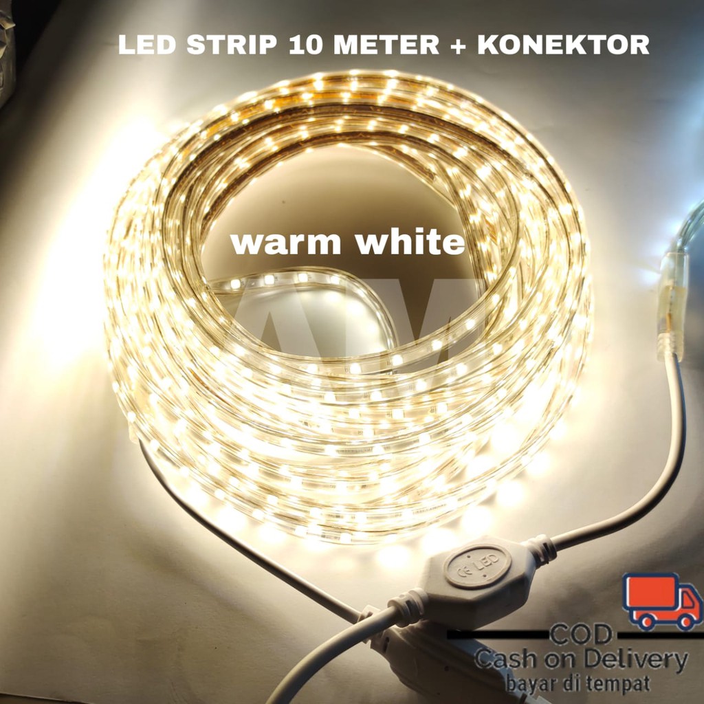LED Strip 10M/Lampu Selang Meteran 220V -10 Meter +Konektor/Colokan[ WHITE, WARM WHITE, BLUE ]