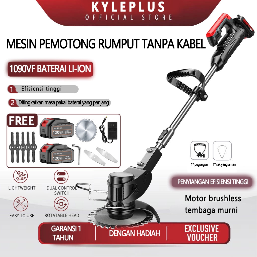 KYLEPLUS Mesin Potong Rumput 1090V/588V/288V Pemotong Rumput Listrik Pemangkas Rumput dengan Baterai Li-ion yang Dapat D