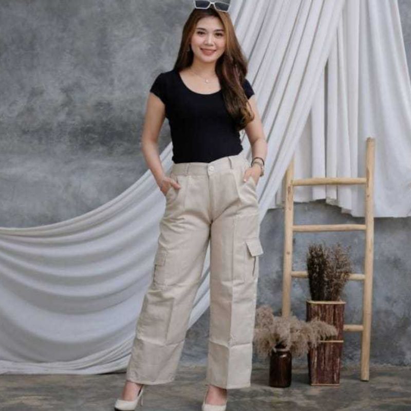 Cargo Katun Twill Combet Street /Celana Wanita Hightwaist // Kulot Kargo Wanita Melar// Celana Jumbo