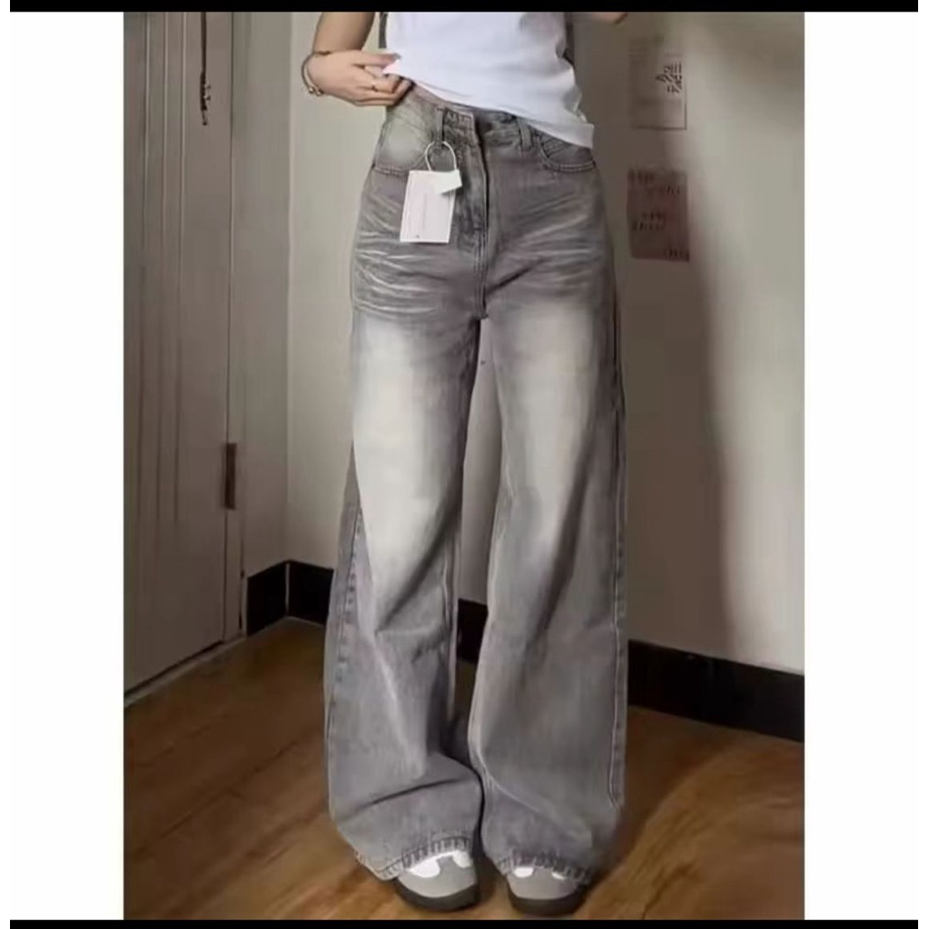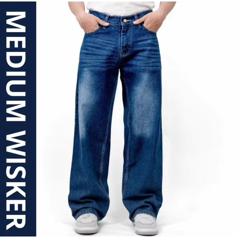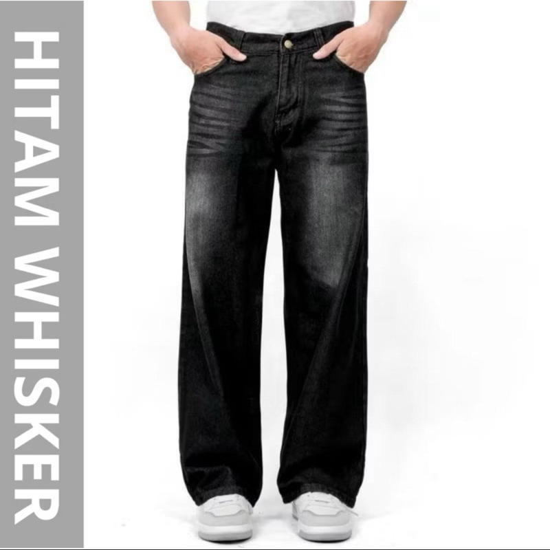 Celana Jeans oversize Gombrong Pria Hitam Wisker Loose Denim Baggy Pants Korean Style - Keren, Cowok Cewek, Skena - Fit, Panjang, (PRIA WANITA) Original