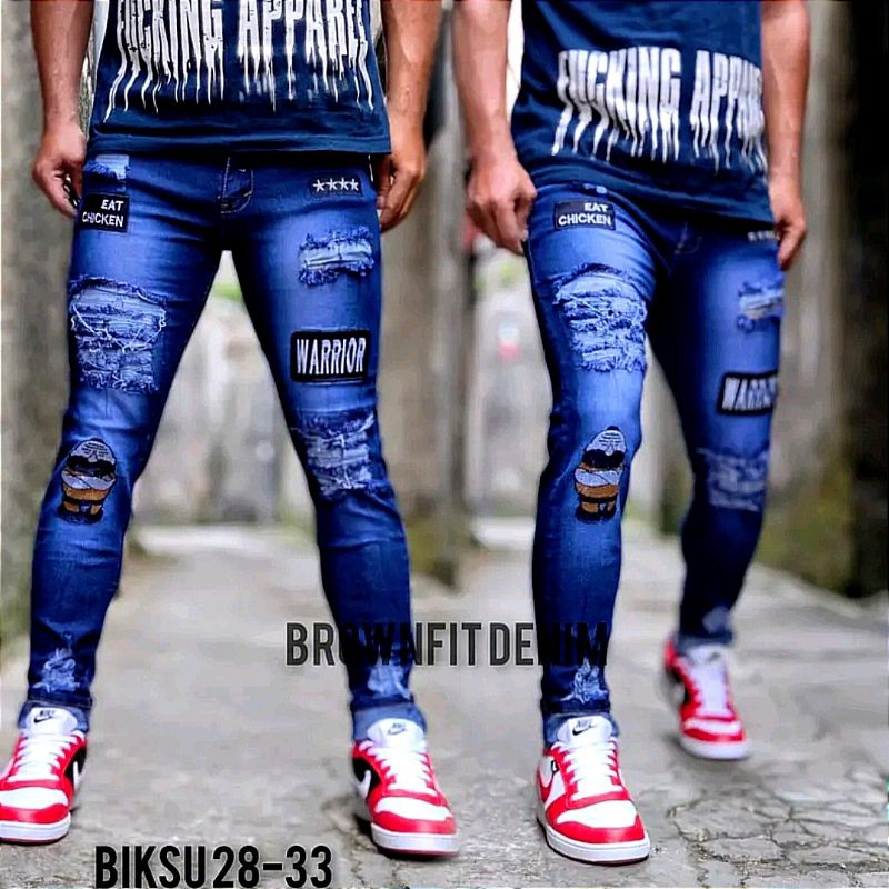 Romeo Passion Celana Jeans Pria Panjang Sobek Emblem Skinny Slim Fit Stretch Melar