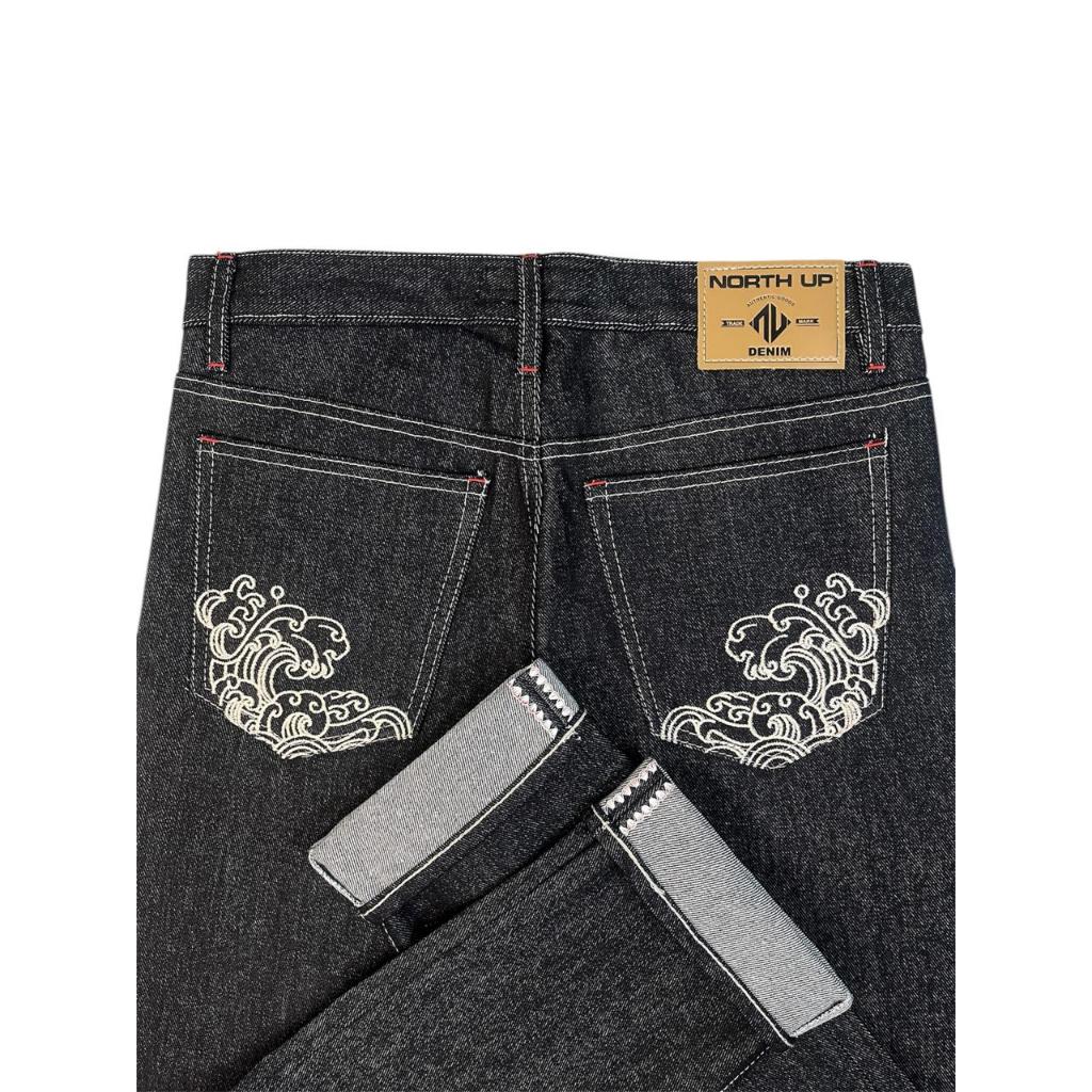 NORTH UP CELANA RAW DENIM SELVEDGE ACCENT SHELSTICH BLACK INDIGO