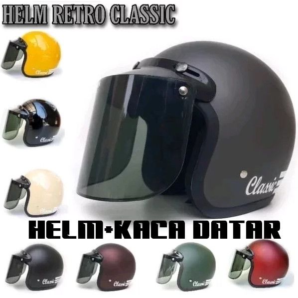 HELM BOGO CLASIC DEWASA GARIS KACA DATAR SNI