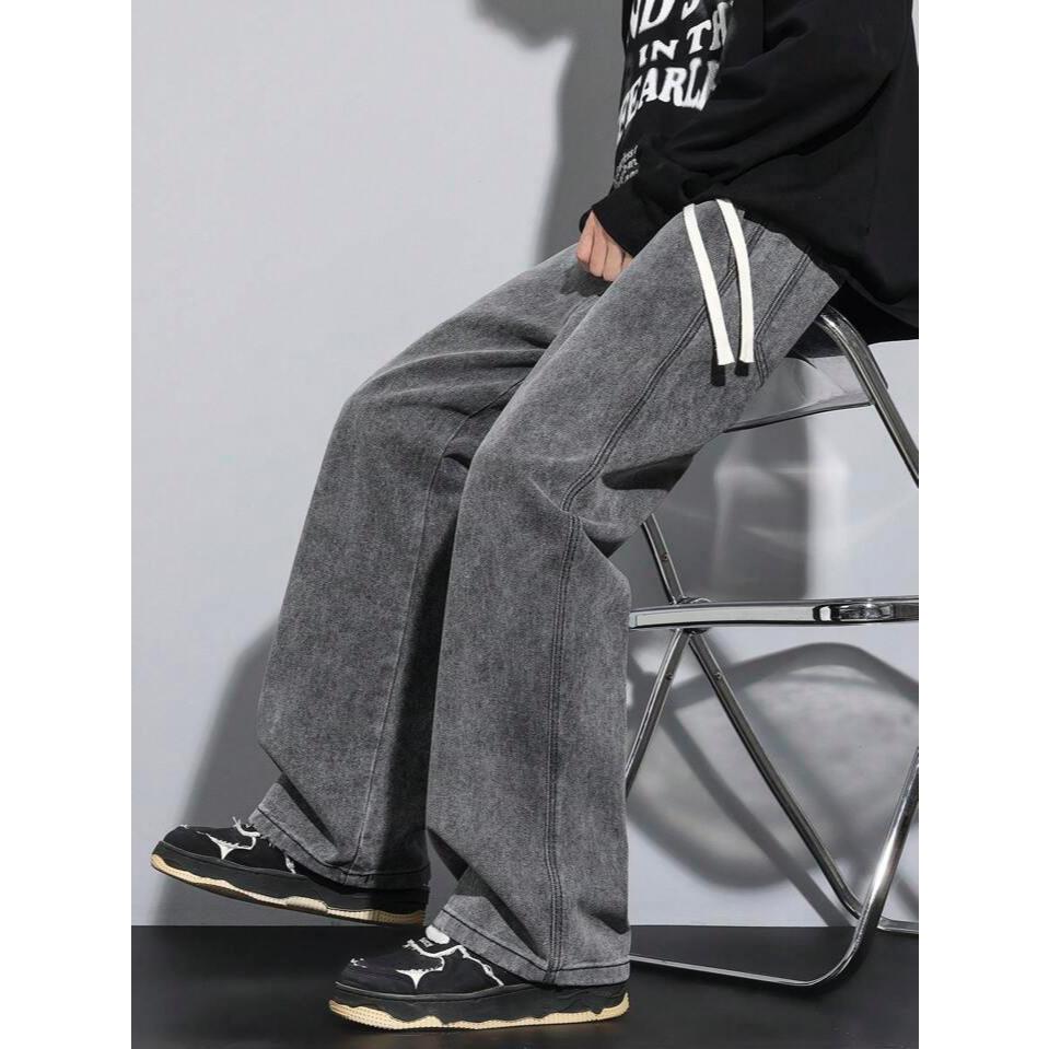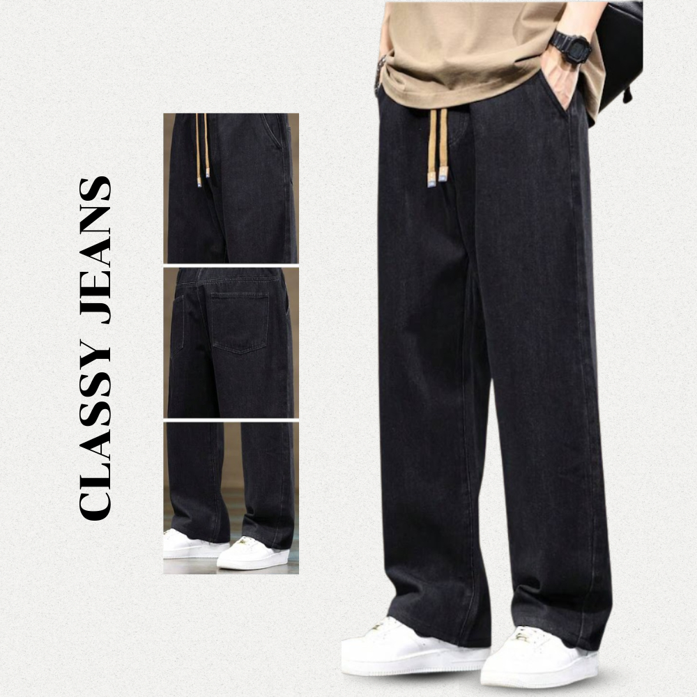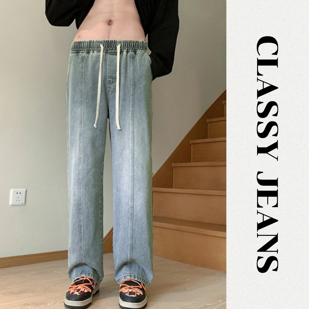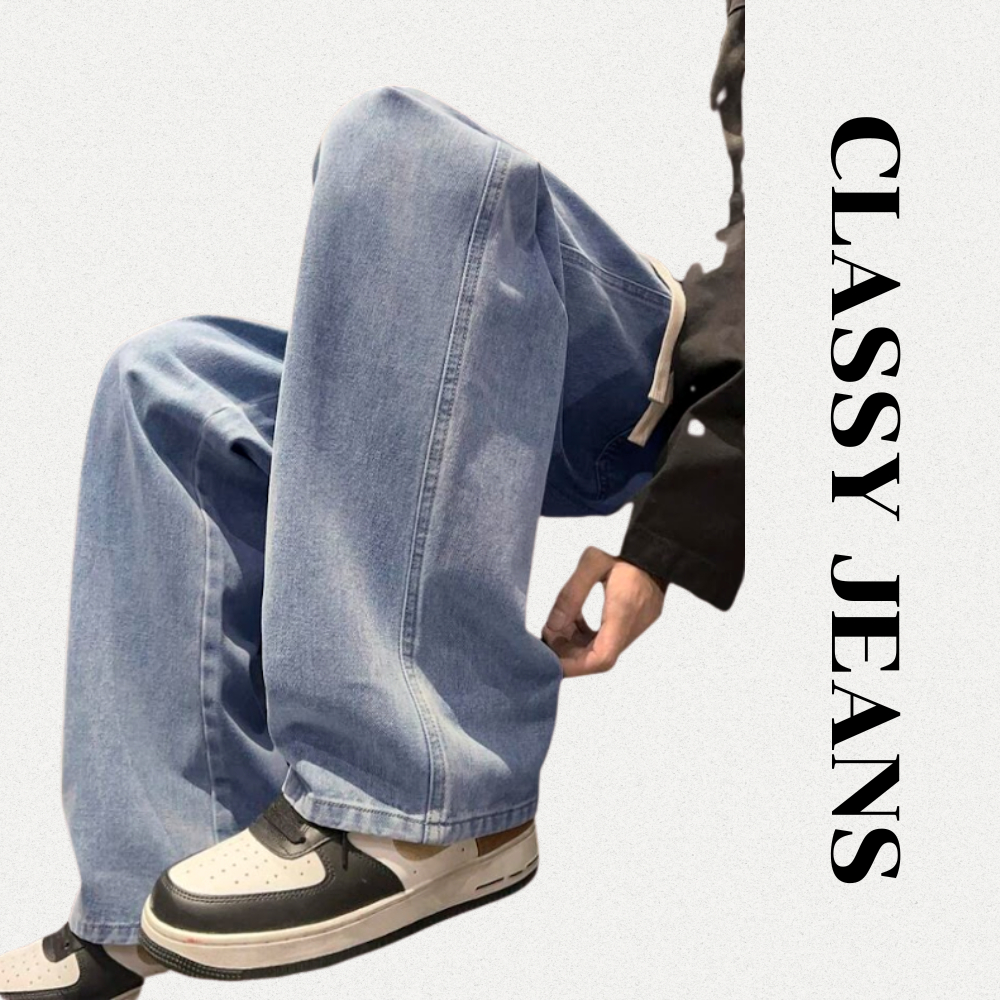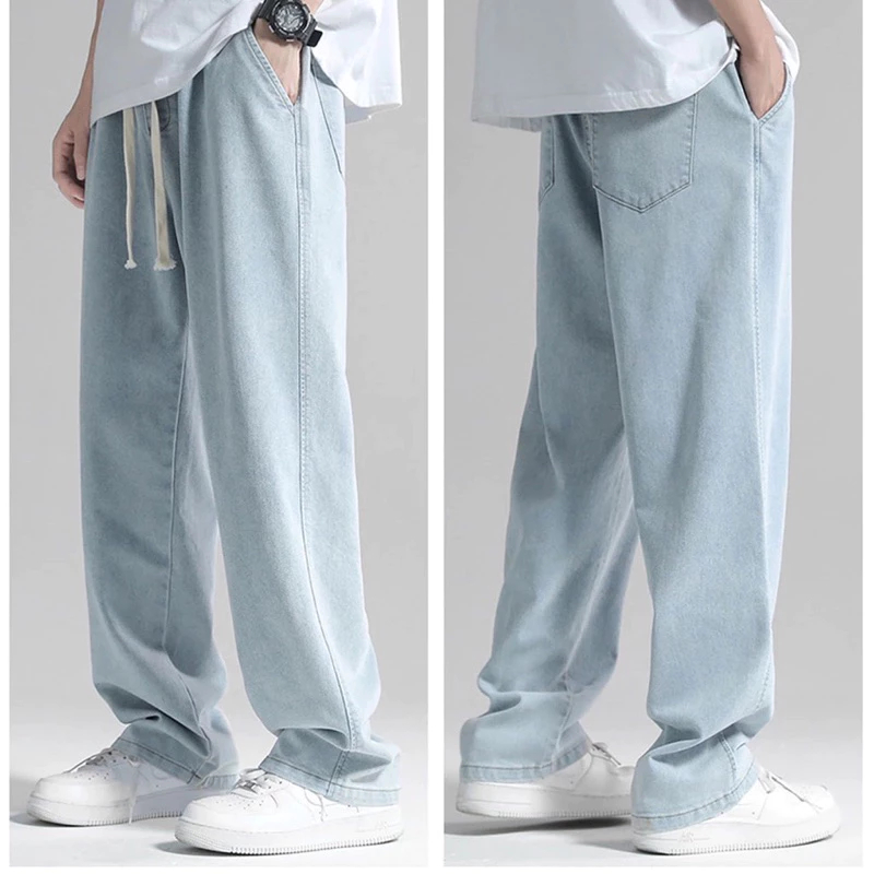 Celana Jeans Pria Pinggang Karet Korean Style Jumbo | Loose Pants Oversize Kulot Denim Pria Kekinian | Jeans Biru Muda Nyaman & Stylish