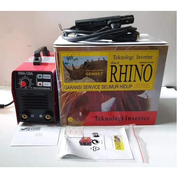 BONUS TOPENG LAS ORI MESIN LAS LISTRIK TRAVO LAS INVERTER RHINO MMA 120A 900 Watt MERAH MURAH BERKUALITAS