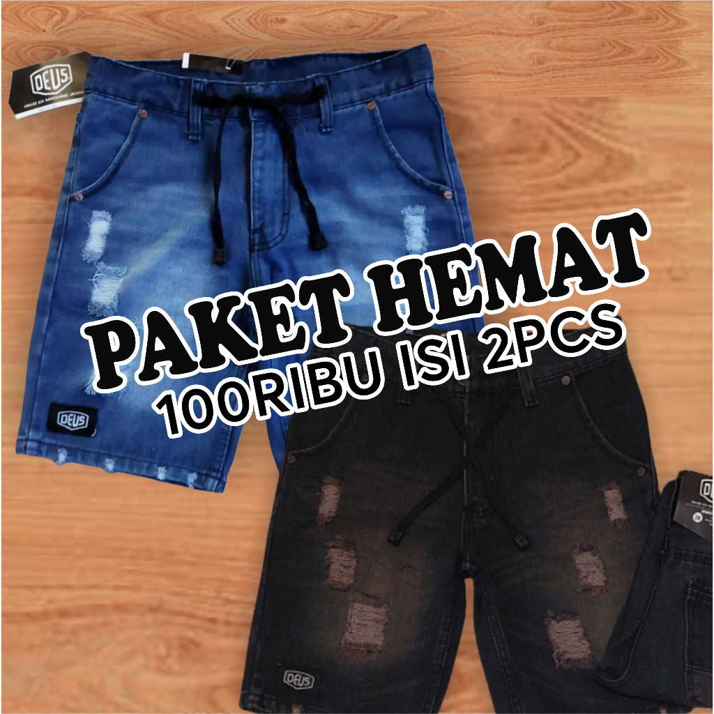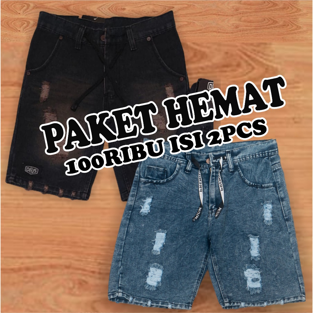 Buy One Get One Paket Hemat 100 ribuan dapat 2 pcs celana jeans pendek sobek tembus pria dewasa