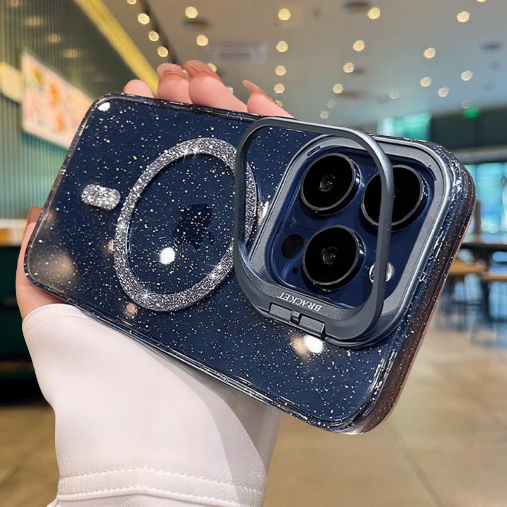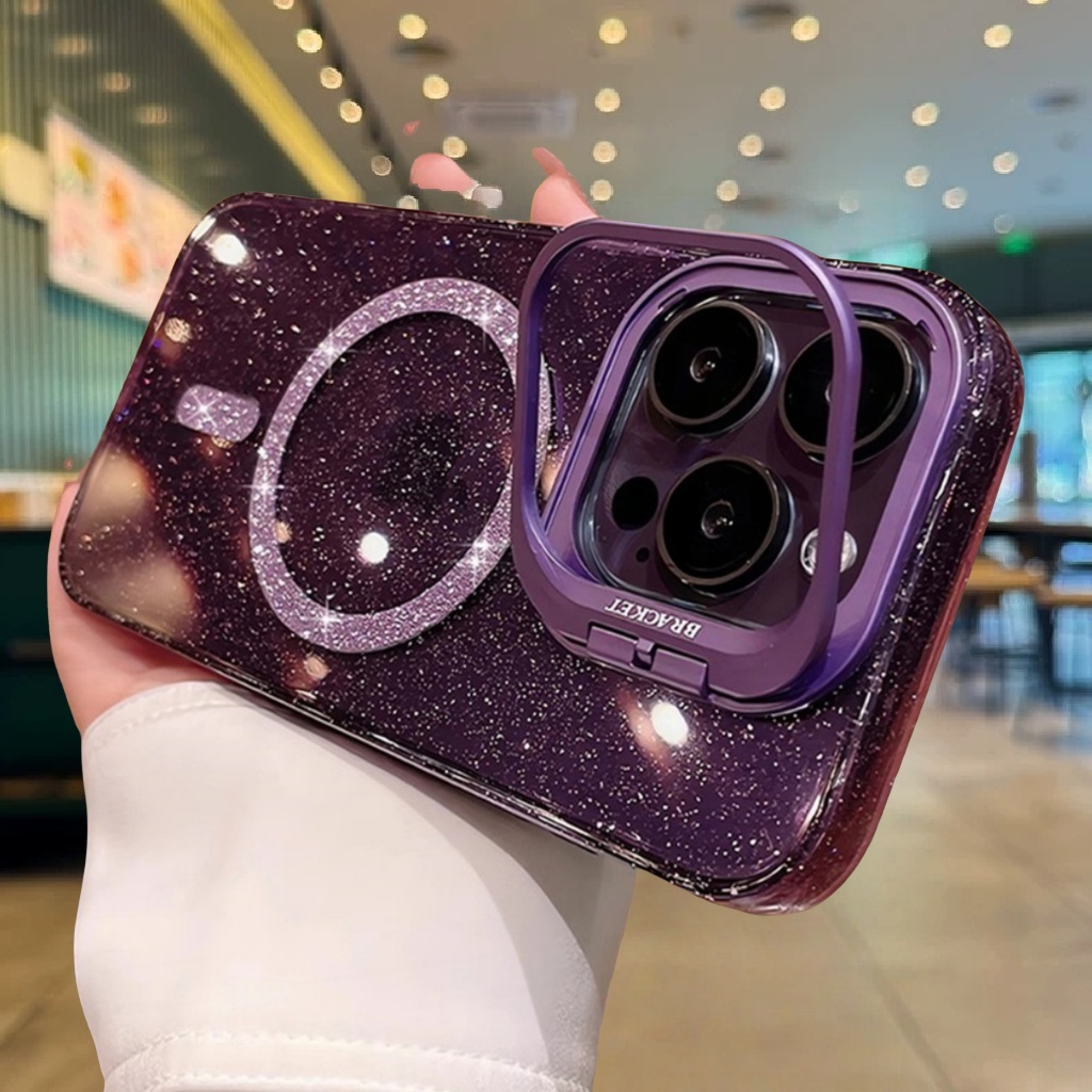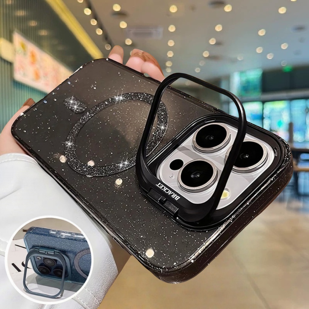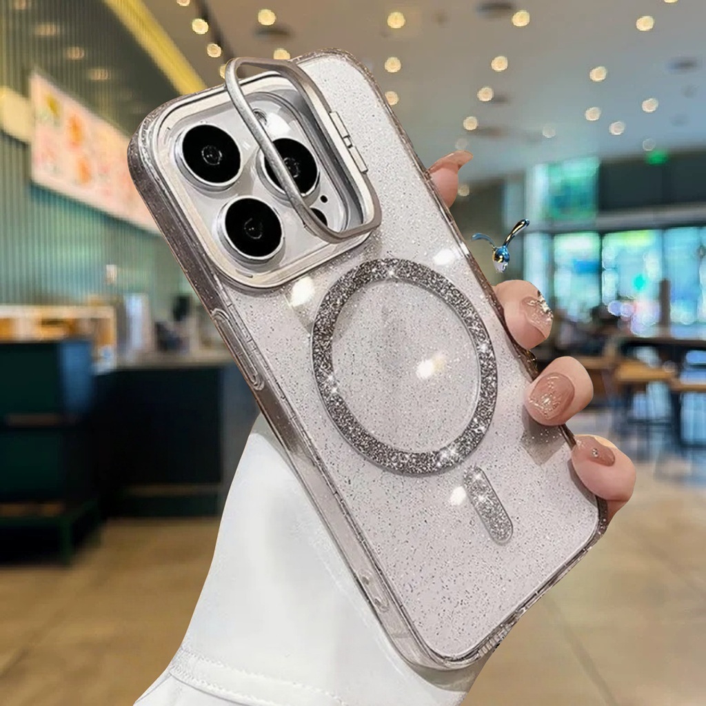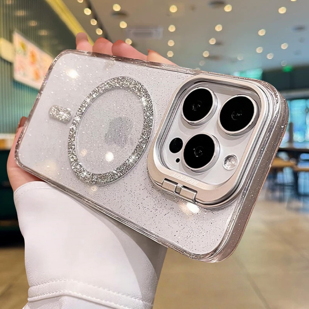 [Mall] LUXURY PREMIUM GLITTER FLIP LENS STAND MAGNETIC PHONE CASE FOR IPHONE 11 12 13 14 15 PRO MAX TRANSPARENT CASE SHOCKPROOF COVER SUPPORTS WIRELESS CHARGING PROTECTION COVER
