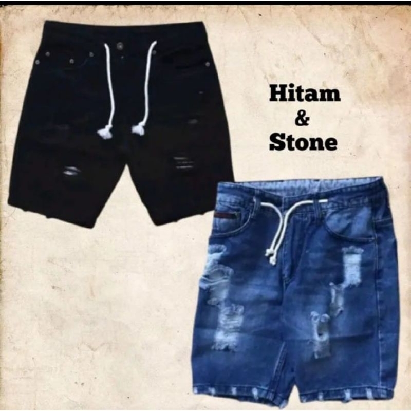 Paket 100 Ribu 2 pcs / Celana pendek sobek pria jeans distro Fashion Lokal Premium Tebal Nyaman Style