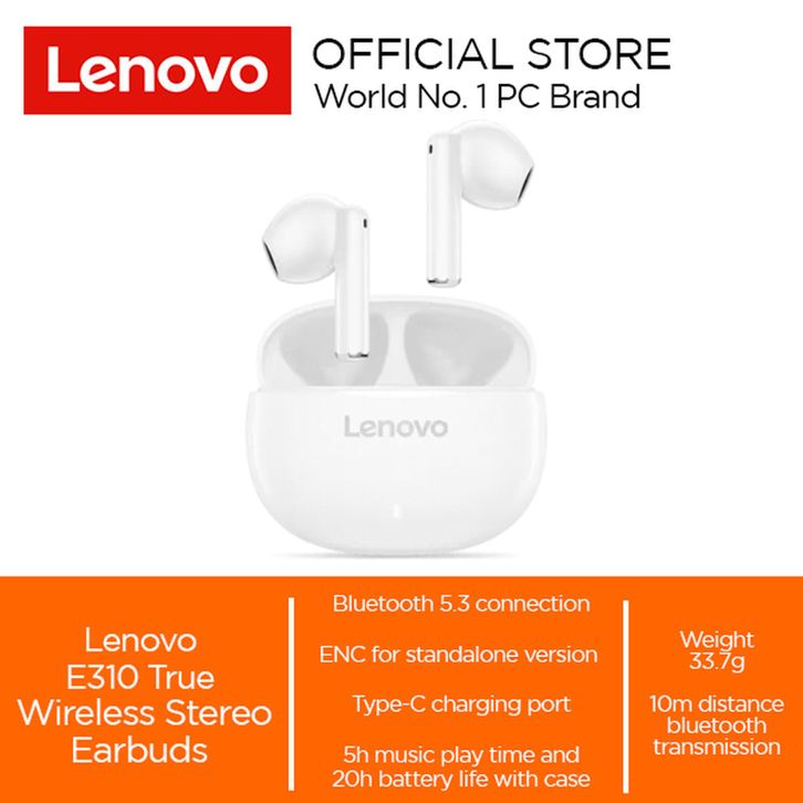 Lenovo E310 True Wireless Stereo Earbuds standalone-white