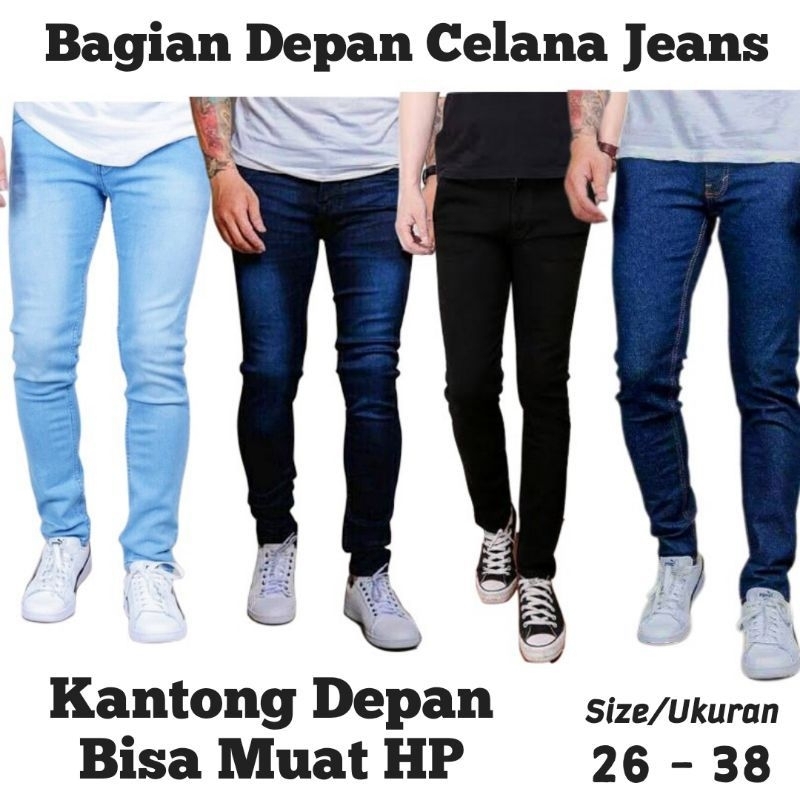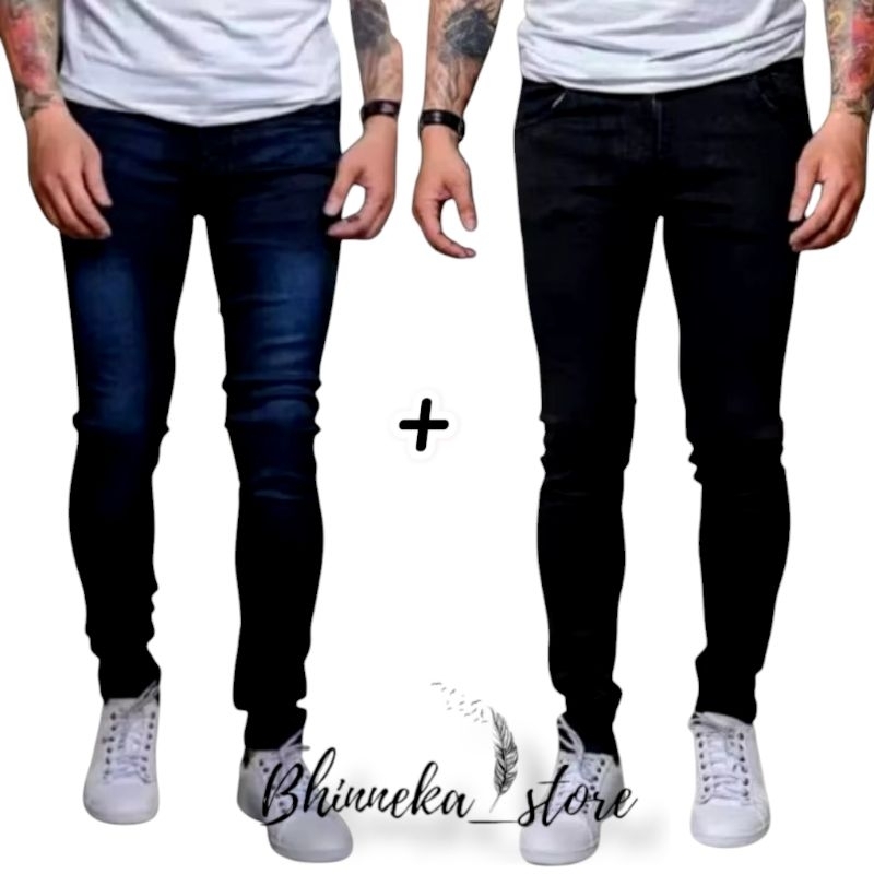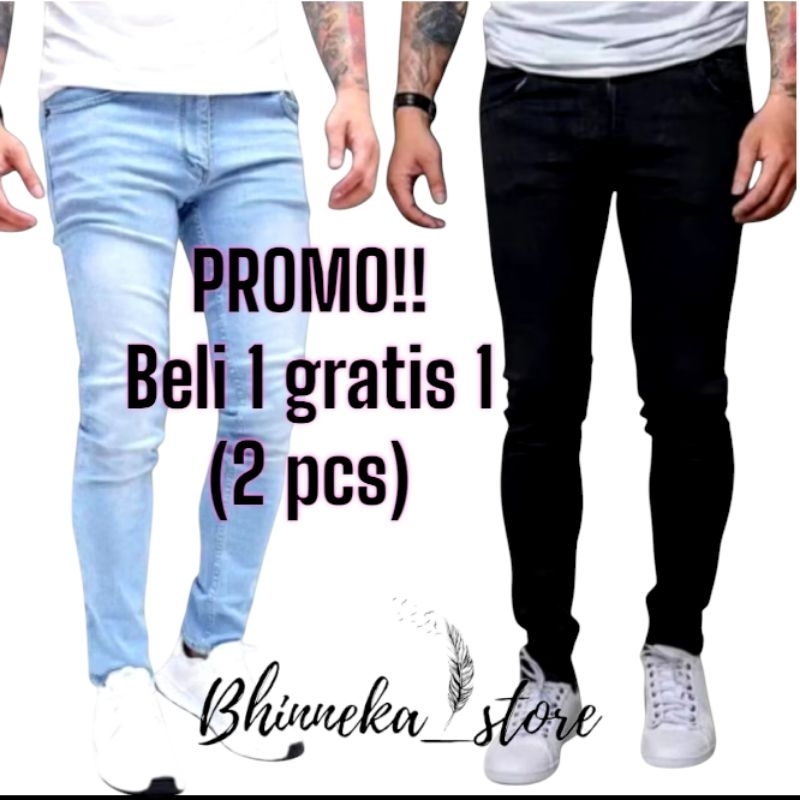 Celana Jeans Pria Beli 1 Gratis Satu Celana Pensil Cowok Bahan Melar Slimfit Premium