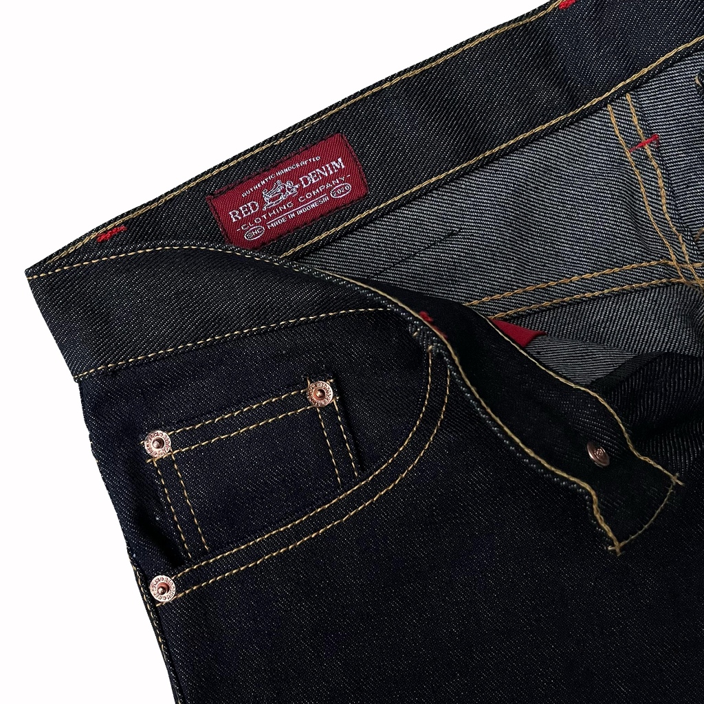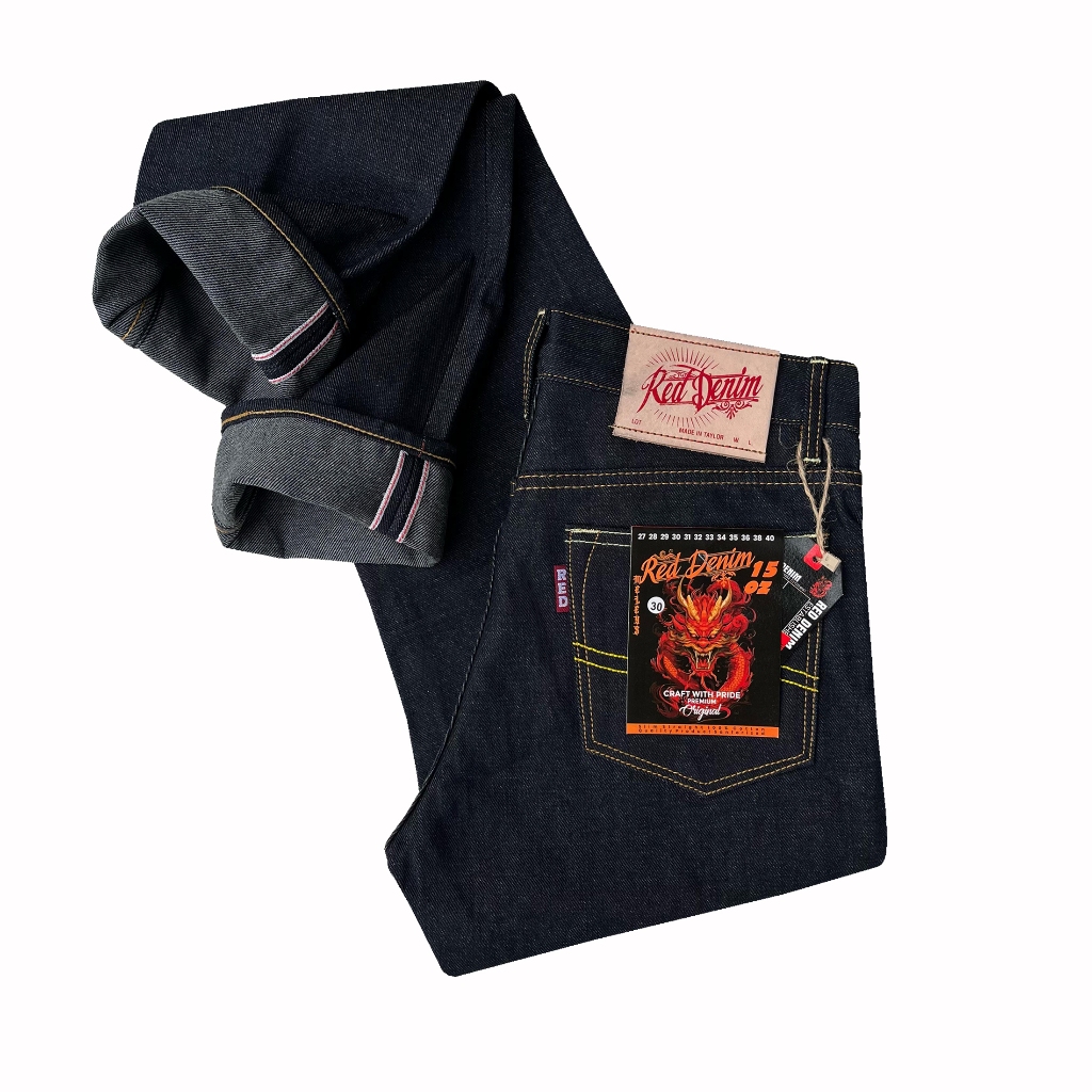 RED DENIM - Denim Black Indigo 15Oz Sanforized Raw Denim Accent Selvedge Original