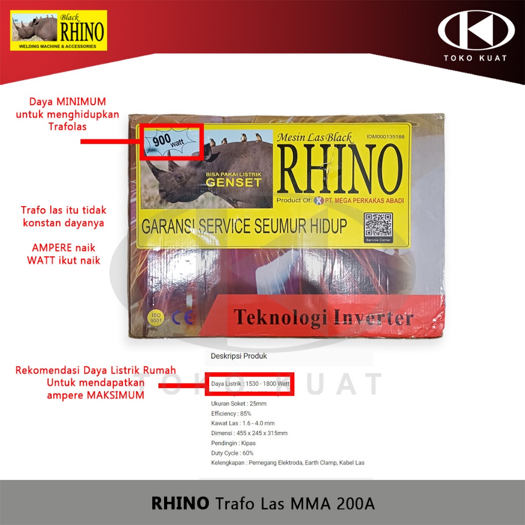 RHINO MMA 200A Trafo Mesin Las Listrik - Garansi Resmi